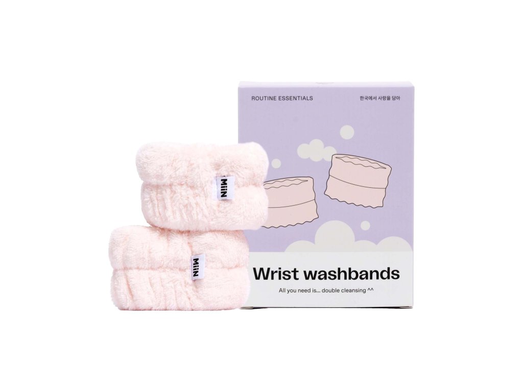 Ružové flanelové náramky na uľahčenie dvojitého čistenia.