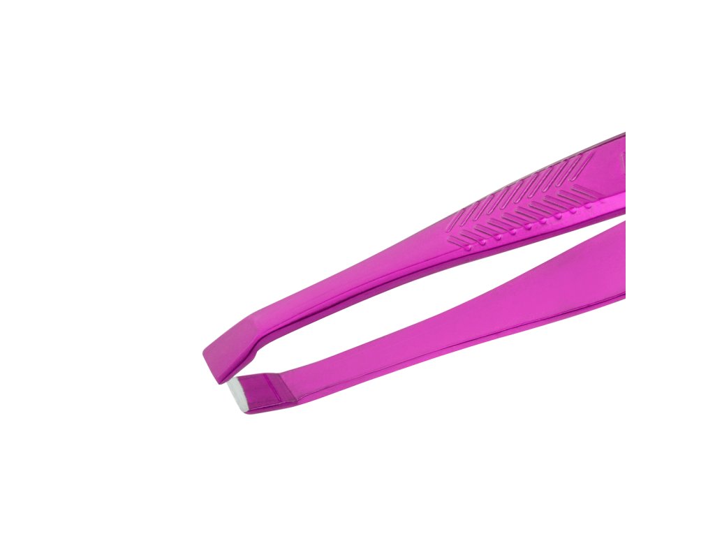 Vďaka úzkej úchopovej ploche je nástrojveľmi presné - pomocou neho sa ľahko dostanete k nežiaducim chĺpkom. Starostlivo tvarované ramená s protišmykovými prvkami zaručujúpohodlné a presné manévrovanie, zatiaľ čo skosená čepeľ zaručuje všestrannosť -umožňuje pohodlne uchopiť aj tie najjemnejšie chĺpky a precízne vytvarujte obočie. Štýlový dizajn pinzety s kovovým povrchom vo fialových odtieňoch dodáva nástrojuelegantný a jedinečný charakter.