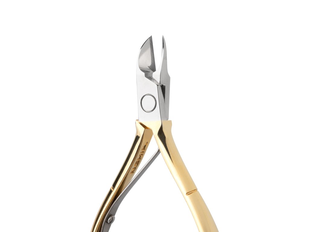 Jedna pružina spája ramená klieští, čím zabezpečujecit a presnosť rezania. Starostlivá konštrukcia pružiny umožňujepohodlná práca. Tvar a veľkosť ramien zaisťujú, že kliešte pevne držia v ruke,zaručuje pohodlné používanie. Vďaka leštenej povrchovej úprave v odtieňoch zlata pôsobia elegantne a nástroj je odolný aľahko sa udržiava v čistote. To z nich robí ideálny nástroj pre profesionálov, ako aj pre domácu starostlivosť o nechty.