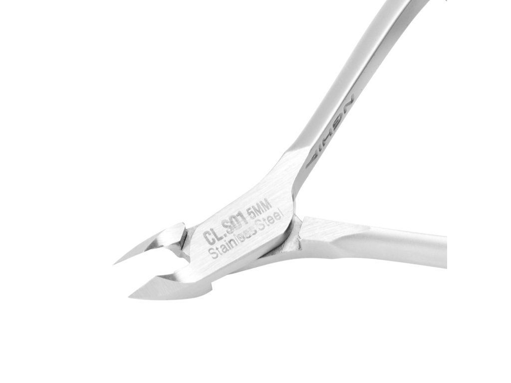 Presné 5 mm dlhé čepele sú ideálne na komplexné ošetrenie manikúry.Charakteristický profil rezu a vhodná veľkosť uľahčujú veľmi presné ošetrenie. Čeľuste klieští sú spojené pomocoumetóda Lap Joint, vďaka čomu sa pri používaní dokonale zhodujú, zabezpečenie presného rezania. Kliešte majú zodpovedajúci kryt čepele vyrobený z odolného plastu.