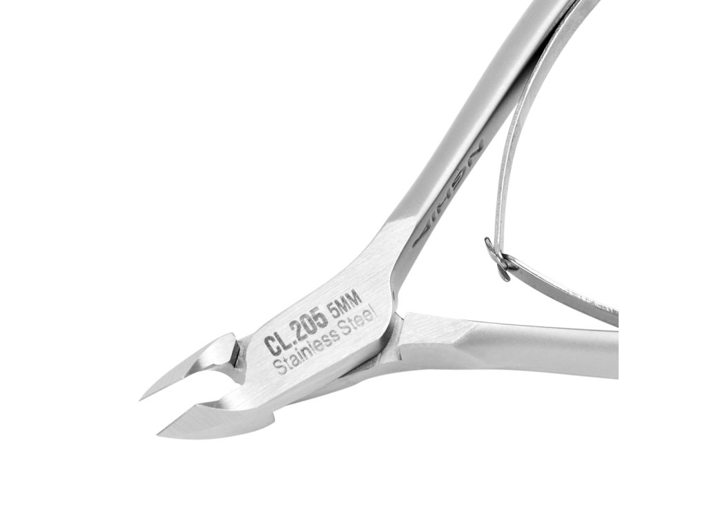 Presné 5 mm dlhé čepele sú ideálne na komplexné ošetrenie manikúry. Vďaka charakteristickému strihanému profilu a vhodnej veľkostijednoduchšie vykonávanie veľmi presných ošetrení. Čeľuste klieští sú spojené pomocoumetóda Lap Joint, vďaka čomu sa pri používaní dokonale zhodujú,zabezpečenie presného rezania. Kliešte majú zodpovedajúci kryt čepele vyrobený z odolného plastu.