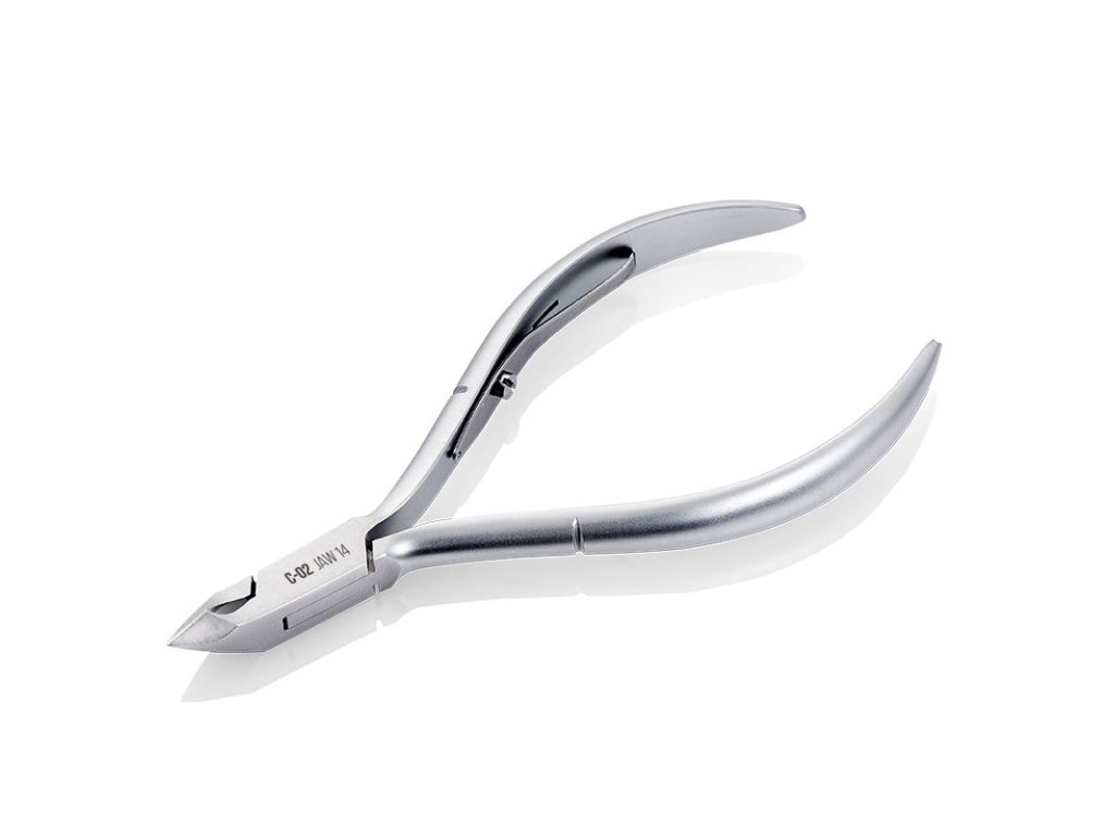 profesionálne kliešte na kožičku z kobaltovej ocele s jednostrannou pružinou, určené na presné strihanie kožičky. dostupné vo veľkostiach čeľustí 12 (5 mm), 14 (6 mm). Vďaka zapustenému spôsobu spojenia čeľustí