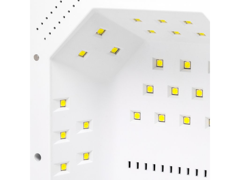 Vďaka36 presne umiestnených LED diód, lampa zabezpečuje dokonalé vytvrdnutie gélov a hybridných leštiacich prostriedkov,odstránenie mŕtvych zón. Jeho uzavretá konštrukcia, známa ako kabína, umožňujerýchlejšie a presnejšie vytvrdzovanie nechtových vzorov. Technológia Dual LED, ktorávyžaruje svetlo dvoch vlnových dĺžok, znižuje únavu očí a rozširuje možnosti zariadenia. Stránkazrkadlové dno rovnomerne odráža svetlo, čím sa urýchli proces vytvrdzovania. Vďaka týmto pokročilým funkciám lampa umožňujedokonalé vytvrdzovanie aj tých najnáročnejších výrobkov, čím sa dostanete do ťažko prístupných oblastí nechtovej platničky.