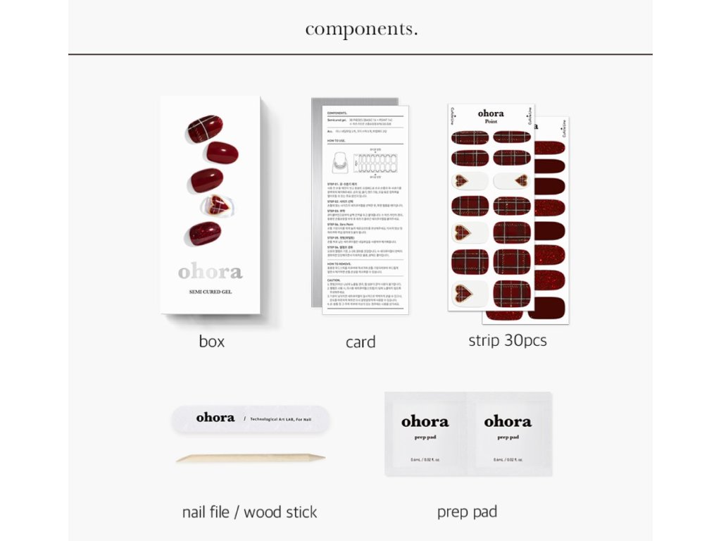 Nemáte čas na úpravu nechtov v salóne? Gélové pásiky na nechty Ohora, ktoré sú novinkou spoločnosti MiiN Trade, sa ľahko aplikujú, pilujú, zasychajú a odstraňujú. Polotvrdený gél je inovatívna technológia, ktorá spôsobila revolúciu v starostlivosti o nechty v Kórei. Úplne sa líši od tradičného gélového laku a štandardného prúžku na nechty. Mäkké a pružné gélové pásiky sú navrhnuté tak, aby sa prispôsobili tvaru nechtov a vytvorili gélovú manikúru salónovej kvality. Každé balenie obsahuje 30 prúžkov v 15 rôznych veľkostiach na vykonanie dvoch manikúr z jedného balenia. Zakrivený dizajn v tvare písmena C umožňuje prúžkom dosiahnuť okraje nechtov a poskytuje silnejšiu priľnavosť. Pásiky majú trojvrstvovú štruktúru: základný gél, farebný gél a vrchný gél (pôsobí ako ochranná vrstva, aby manikúra vydržala až 14 dní). Okrem toho každé balenie obsahuje dva obrúsky na prípravu nechtov pred aplikáciou, pilník na prispôsobenie veľkosti a drevenú tyčinku na zvýšenie presnosti pri umiestňovaní prúžkov.???*Použitie*Použitím prúžkov a nástrojov v balení dosiahnete vysnívanú gélovú manikúru.??? ???*Zloženie*?? ???*Ako používať* Nanášajte na suché, čisté nechty. Na odstránenie vlhkosti a nečistôt z nechtov použite prípravné vankúšiky, ktoré sú súčasťou balenia. Vyberte vhodnú veľkosť prúžku pre každý necht a naneste ho pomocou drevenej tyčinky. Odstrihnite prebytočnú dĺžku a na dokonalý povrch použite pilník z balenia. Pre dlhšie trvajúcu manikúru upravte nechty pod UV lampou. Ak chcete odstrániť prúžky na nechty, jemne zatlačte koniec prúžku drevenou paličkou namočenou v odlakovači na nechty. Používajte len na zdravé nechty a len pre dospelých. Skladujte pri izbovej teplote, mimo dosahu priameho slnečného žiarenia. Pozrite si video.???