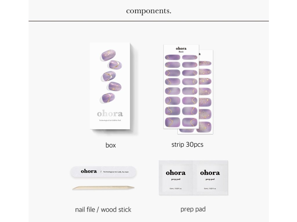 Nemáte čas na úpravu nechtov v salóne? Gélové pásiky na nechty Ohora, ktoré sú novinkou spoločnosti MiiN Trade, sa ľahko aplikujú, pilujú, zasychajú a odstraňujú. Polotvrdený gél je inovatívna technológia, ktorá spôsobila revolúciu v starostlivosti o nechty v Kórei. Úplne sa líši od tradičného gélového laku a štandardného prúžku na nechty. Mäkké a pružné gélové pásiky sú navrhnuté tak, aby sa prispôsobili tvaru nechtov a vytvorili gélovú manikúru salónovej kvality. Každé balenie obsahuje 30 prúžkov v 15 rôznych veľkostiach na vykonanie dvoch manikúr z jedného balenia. Zakrivený dizajn v tvare písmena C umožňuje prúžkom dosiahnuť okraje nechtov a poskytuje silnejšiu priľnavosť. Pásiky majú trojvrstvovú štruktúru: základný gél, farebný gél a vrchný gél (pôsobí ako ochranná vrstva, aby manikúra vydržala až 14 dní). Okrem toho každé balenie obsahuje dva obrúsky na prípravu nechtov pred aplikáciou, pilník na prispôsobenie veľkosti a drevenú tyčinku na zvýšenie presnosti pri umiestňovaní prúžkov.???*Použitie*Použitím prúžkov a nástrojov v balení dosiahnete vysnívanú gélovú manikúru.??? ???*Zloženie*?? ???*Ako používať* Nanášajte na suché, čisté nechty. Na odstránenie vlhkosti a nečistôt z nechtov použite prípravné vankúšiky, ktoré sú súčasťou balenia. Vyberte vhodnú veľkosť prúžku pre každý necht a naneste ho pomocou drevenej tyčinky. Odstrihnite prebytočnú dĺžku a na dokonalý povrch použite pilník z balenia. Pre dlhšie trvajúcu manikúru upravte nechty pod UV lampou. Ak chcete odstrániť prúžky na nechty, jemne zatlačte koniec prúžku drevenou paličkou namočenou v odlakovači na nechty. Používajte len na zdravé nechty a len pre dospelých. Skladujte pri izbovej teplote, mimo dosahu priameho slnečného žiarenia. Pozrite si video.???