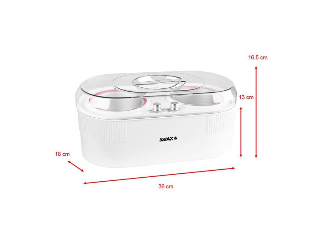 súčasne môže ohrievať dve plechovky s voskom s objemom 400, 500 ml. + 800 ml
