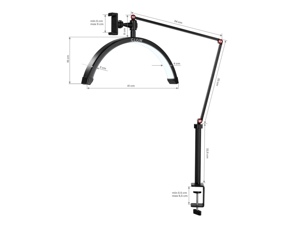 Ošetrovacia lampa Glow MX3 pre stolovú dosku je vybavená jedinečná hlava v tvare oblúka ktorý poskytuje vynikajúce osvetlenie počas ošetrení vyžadujúcich presnosť. Bude sa používať v mnohých špecializovaných ordináciách, kdesprávne svetlo výrazne ovplyvňuje kvalitu služieb, ako je predlžovanie rias, úprava nechtov, tetovanie, kozmetické ošetrenie alebo líčenie. Dobre poslúži aj pri fotografovaní alebo nahrávaní videa.