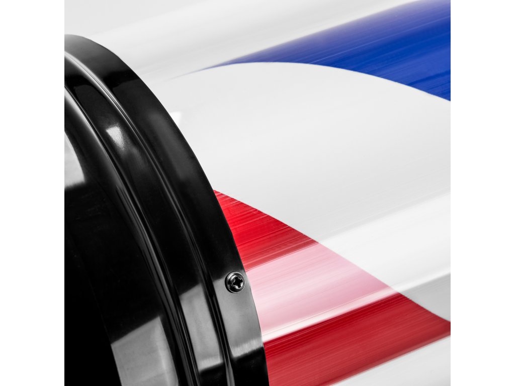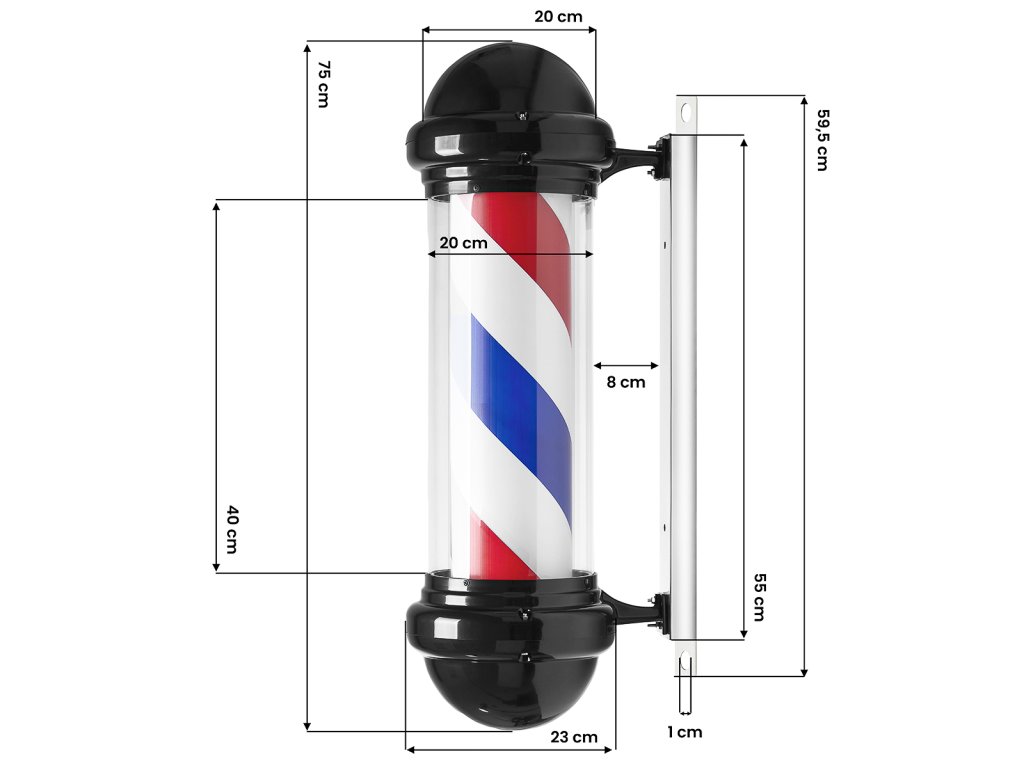 Pútavýosvetlený plafón, vybavený otočným valcom, je vynikajúcou reklamou pre holičstvo.Výrazný dizajns rotujúcimi prvkami v červenej, bielej a modrej farbe vytvára jedinečnú, medzinárodne chápanú vizitku holičstva. Použitiekáblové diaľkové ovládanie, môžete zapnúť osvetlenie aj otáčanie plafónu.