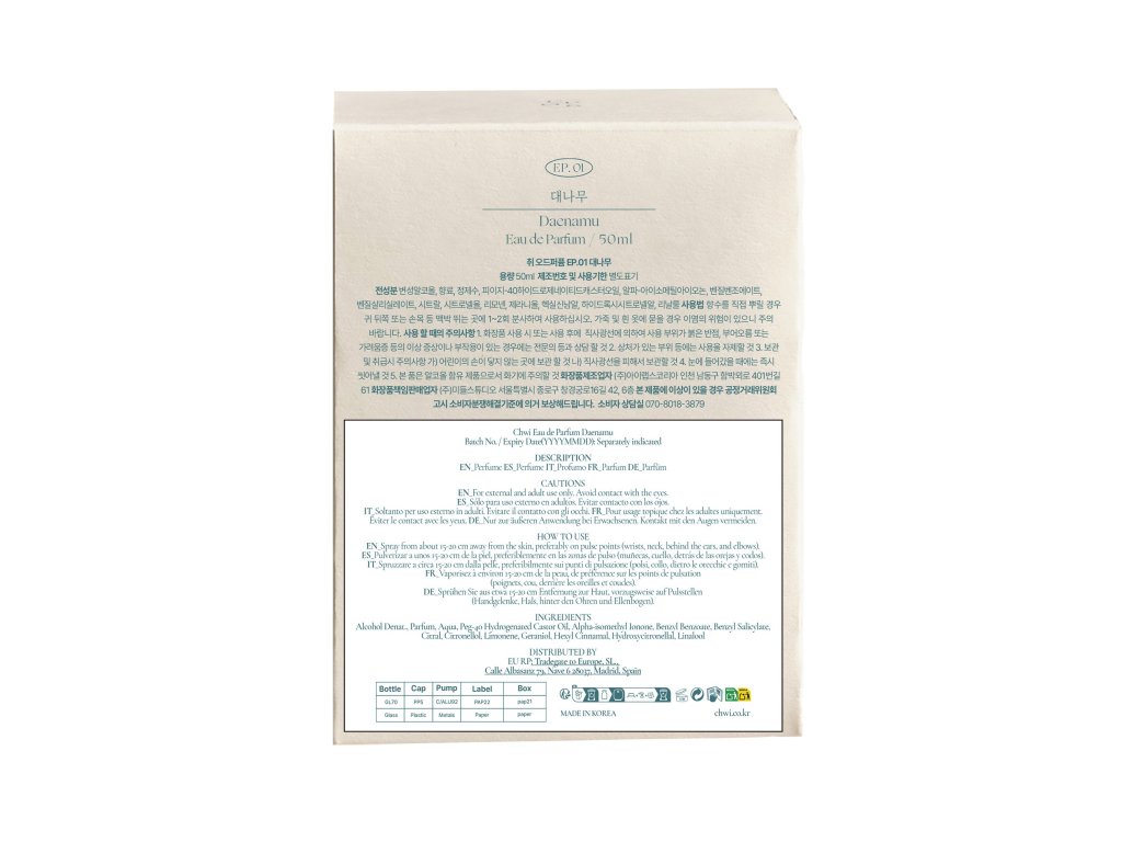 Parfém Daenamu od značky Chwi je vôňa navrhnutá tak, aby priniesla trvalú a sofistikovanú stopu. Jej olfaktorická kompozícia je inšpirovaná prirodzenou sviežosťou bambusu, vyváženou citrusovou vitalitou bergamotu a jemným objatím pižma. Výsledkom je čistá, elegantná vôňa, ideálna na každodenné nosenie aj na špeciálne príležitosti. Jej vegánske zloženie bolo vyvinuté tak, aby bolo vhodné pre všetky typy pokožky a mohlo sa aplikovať na pokožku aj na oblečenie. Parfém obsahuje starostlivo vybrané syntetické vonné látky, ktoré dodávajú kvetinové, zelené a citrusové nuansy - napríklad limonén, citral a linalool - a umocňujú svieži pocit bez toho, aby boli preplnené. Vďaka ľahkej hmlistej textúre ľahko priľne na pulzné body bez zanechania zvyškov. Vďaka svojmu vyváženému a všestrannému čuchovému profilu je parfém Daenamu dokonalou voľbou pre tých, ktorí hľadajú výraznú vôňu vyjadrujúcu prirodzenú sofistikovanosť. Jeho vôňa odráža filozofiu značky Chwi: nenápadnú, modernú krásu v harmónii s prírodou. Zmyselný doplnok, ktorý pozdvihne každodennú starostlivosť o seba každého.???*Použitie*Použite túto vôňu pre sviežu a sofistikovanú vôňu.??? ???*Zloženie*Alkohol denat., parfum, voda, hydrogenovaný ricínový olej Peg-40, alfa-izometyl iónón, benzyl benzoát, benzyl salicylát, citral, citronellol, limonén, geraniol, hexyl cinnamal, hydroxycitronellal, linalool??? ???*Ako používať*Nastriekajte priamo na pokožku alebo odev zo vzdialenosti minimálne 15 cm. Pre dlhšie trvajúce nosenie naneste na pulzné body: krk, zápästie a za ušami.???