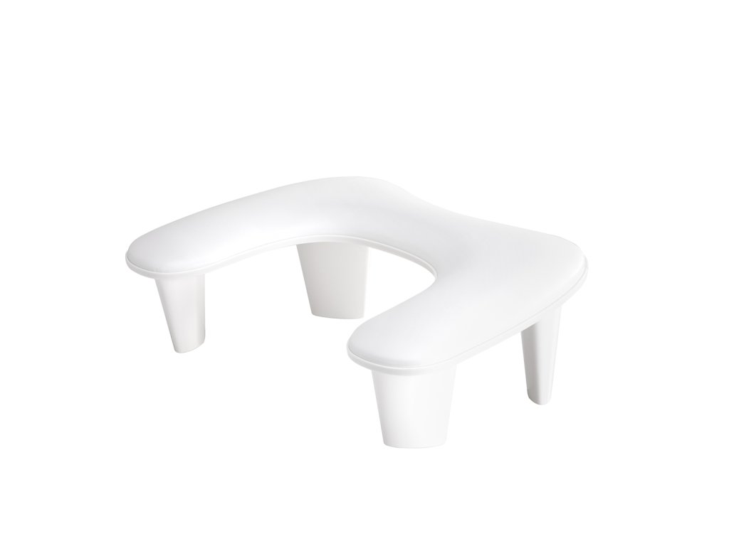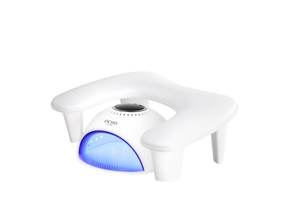 Podpora manikúry Momo Croissant je elegantným a funkčným prvkom vybavenia nechtového salónu. Jeho inovatívny tvar písmena "U"umožňuje umiestniť UV lampu priamo pod podstavec, čozabezpečuje ergonomickú prácu a väčšie pohodliepri úprave nechtov. Taktiežumožňuje voľné manévrovanie ruky klienta, čo znamená pre stylistu presnosť a pohodlie.