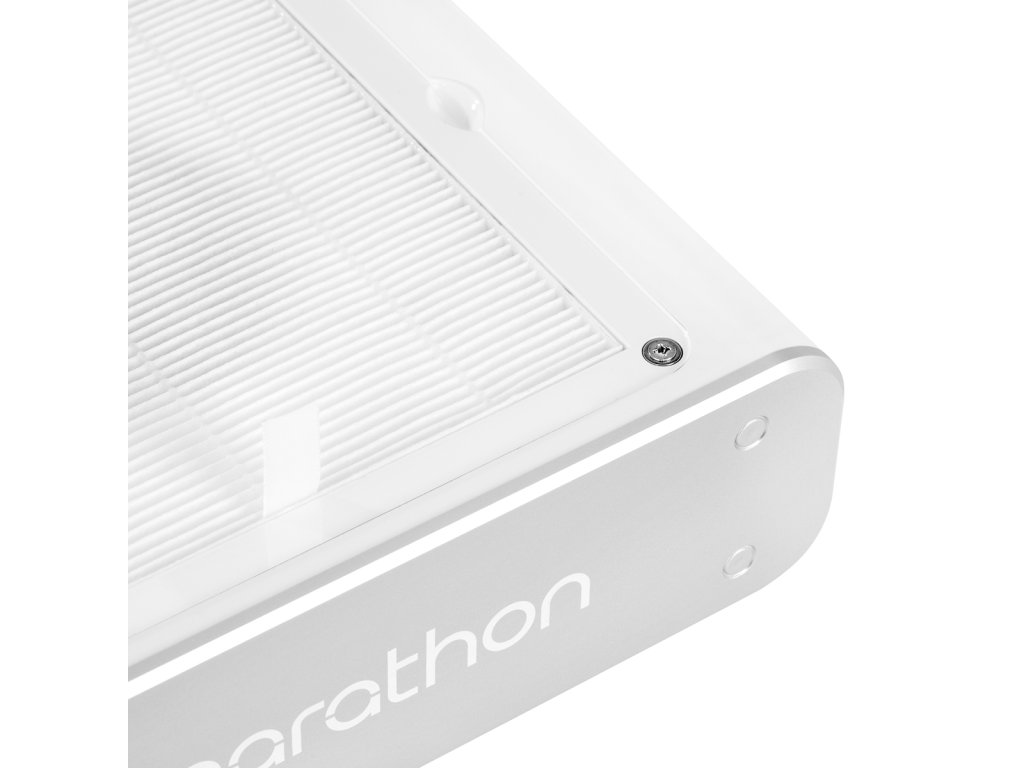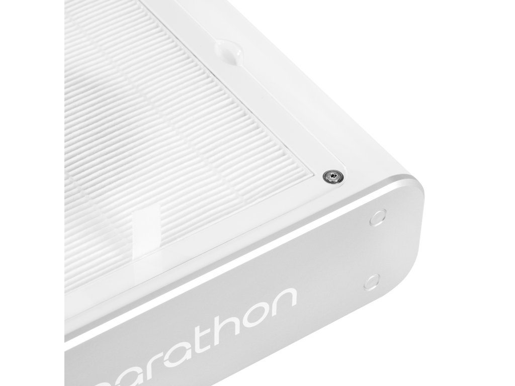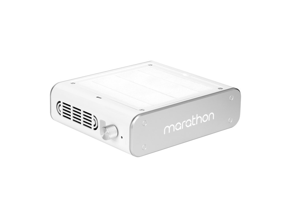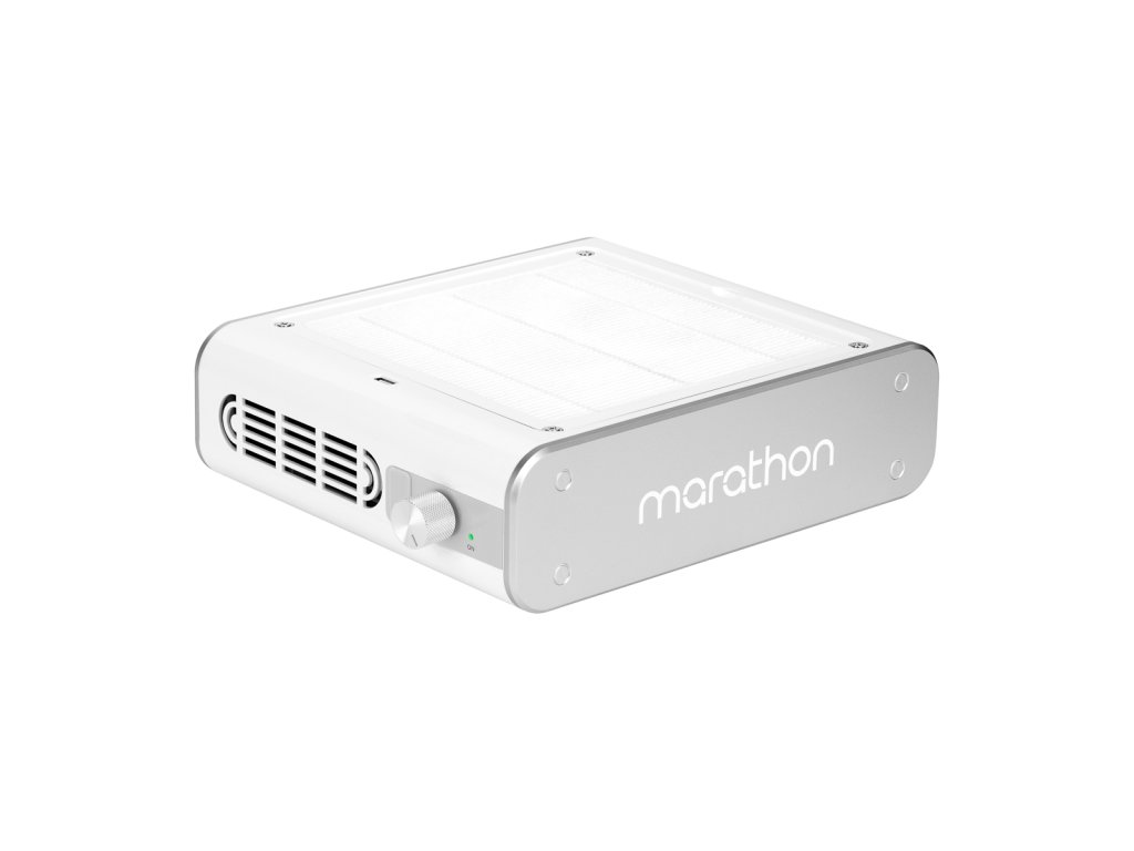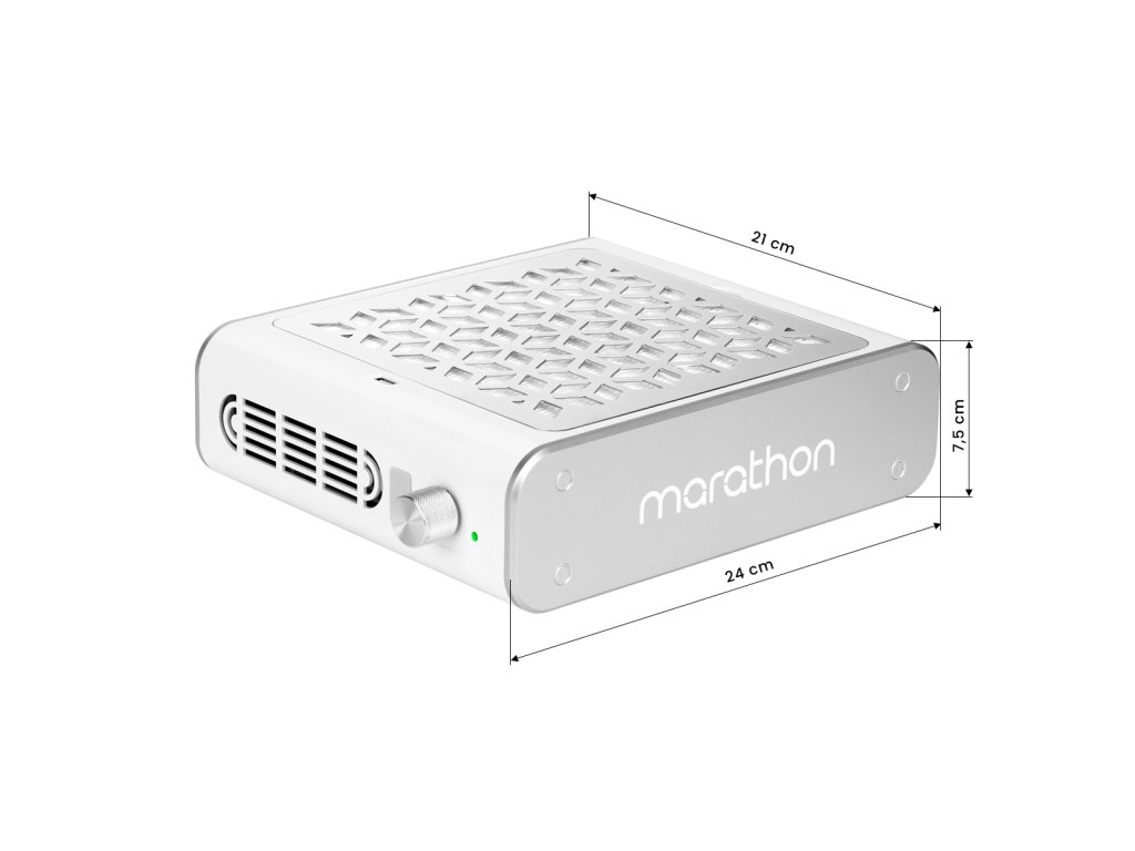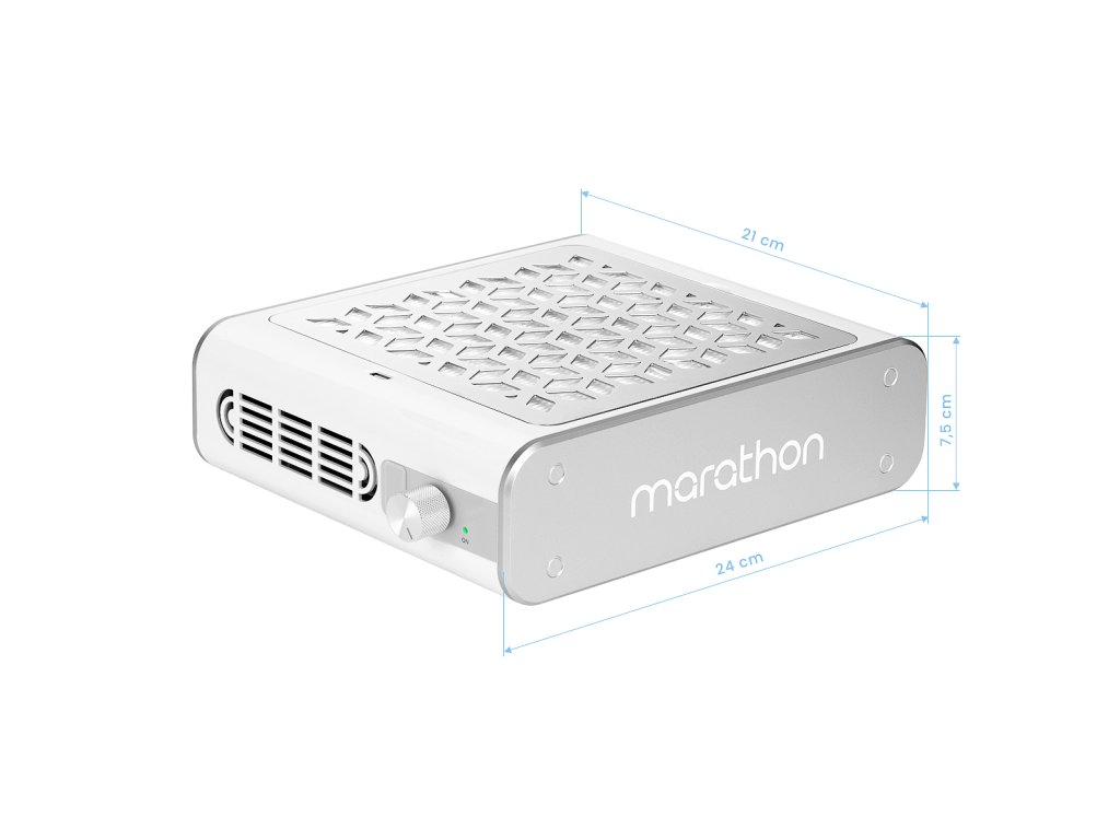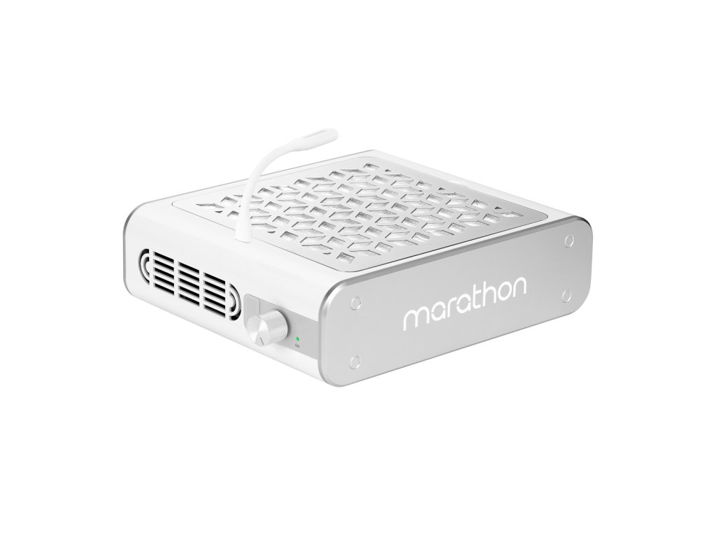 Bezvreckový pohlcovač prachu Marathon je vybavenýjednoduché manuálne nastavenie rýchlosti odsávania, ktorá umožňuje prispôsobiť činnosť zariadenia vykonávanému postupu v danom okamihu.Dióda umiestnená vedľa gombíka indikuje rýchlosť ventilátora farbou svetla. Priložená LED lampa s možnosťou pripojenia k zariadeniu cez USB poskytujedodatočné osvetlenie ošetrovanej oblasti. Premyslené funkcie zariadenia poskytujúvýrazné zlepšenie ergonómie práce.