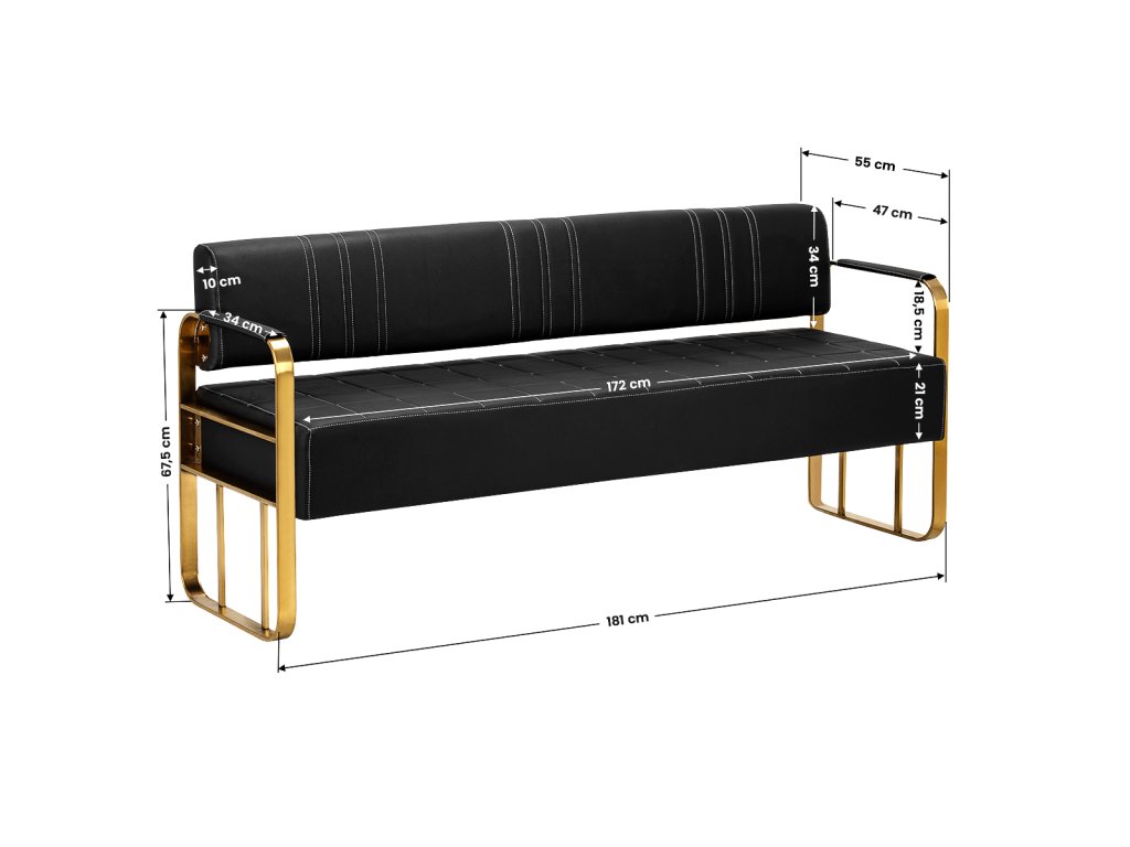 Aširoké sedadlo povrchová úprava zo syntetickej kože v odtieňoch čiernej poskytuje pohodlieaž pre tri osoby, čo umožňuje pohodlné čakanie na ošetrenie. Zlaté prvky, minimalistický tvar aelegantné šitie zdôrazniť jeho exkluzívny charakter. Pohovka Avila je vynikajúcou voľbou, ktorá zvýrazní prestíž vášho salónua zároveň ponúka pohodlie a dlhú životnosť.