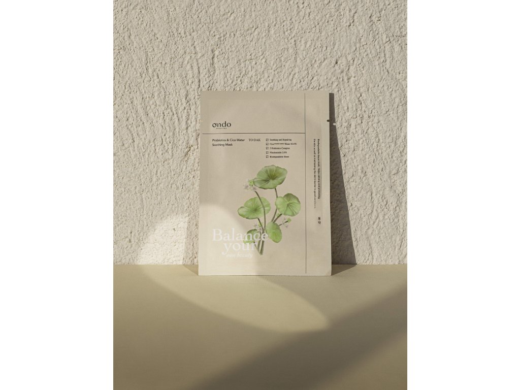 Biologicky odbúrateľná tkanivová maska s 82 % Centella Asiatica, komplexom 5 probiotík a niacínamidom na upokojenie a obnovu pokožky.
