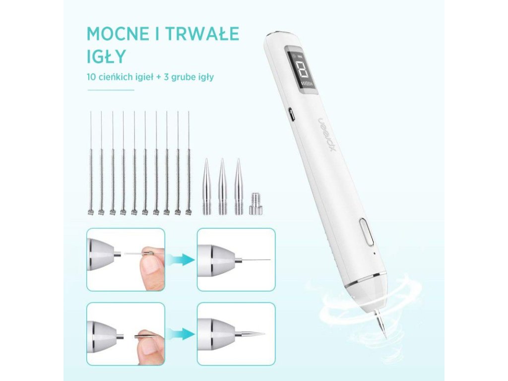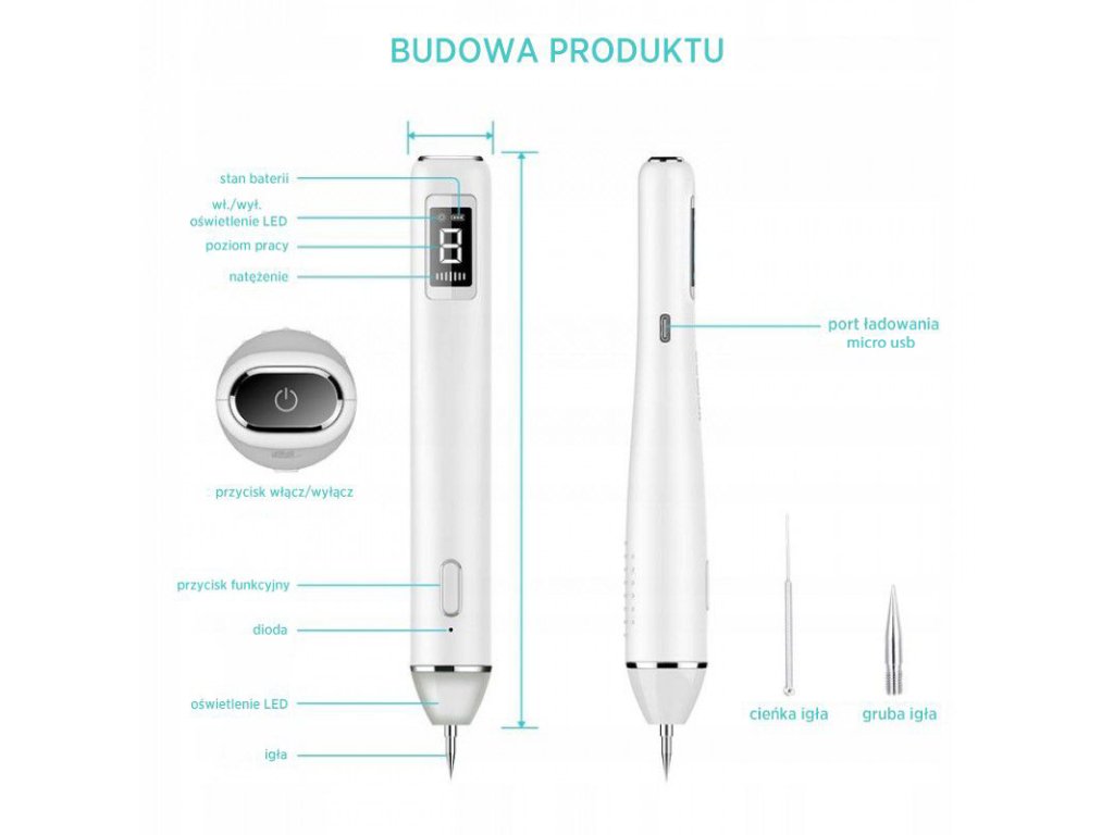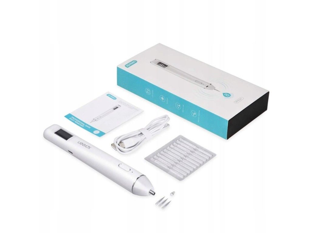 má 8 úrovní intenzity, na výber úrovne stačí stlačiť tlačidlo napájania. hlava je pod vŕtaním s LED diódou, ktorá pomáha presne zamerať na bod. LCD displej zobrazuje úroveň nabitia batérie a pracovnú úroveň. zjednodušený dizajn pre elegantný vzhľad.