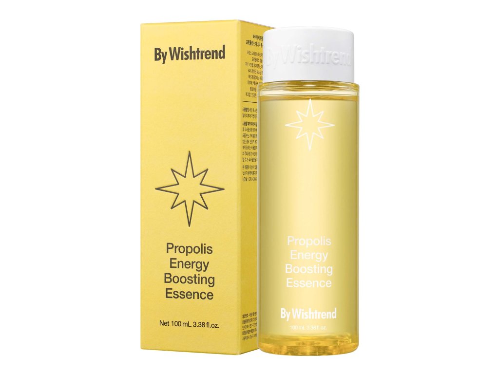 Esencia z radu Propolis Energy od spoločnosti By Wishtrend s obsahom propolisu, výťažku z kôry vŕby bielej a chrpovej vody, ktorá upokojuje, hydratuje a zlepšuje štruktúru pleti, pričom zvyšuje jej žiarivosť a posilňuje kožnú bariéru.
