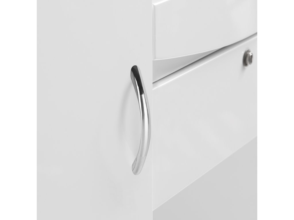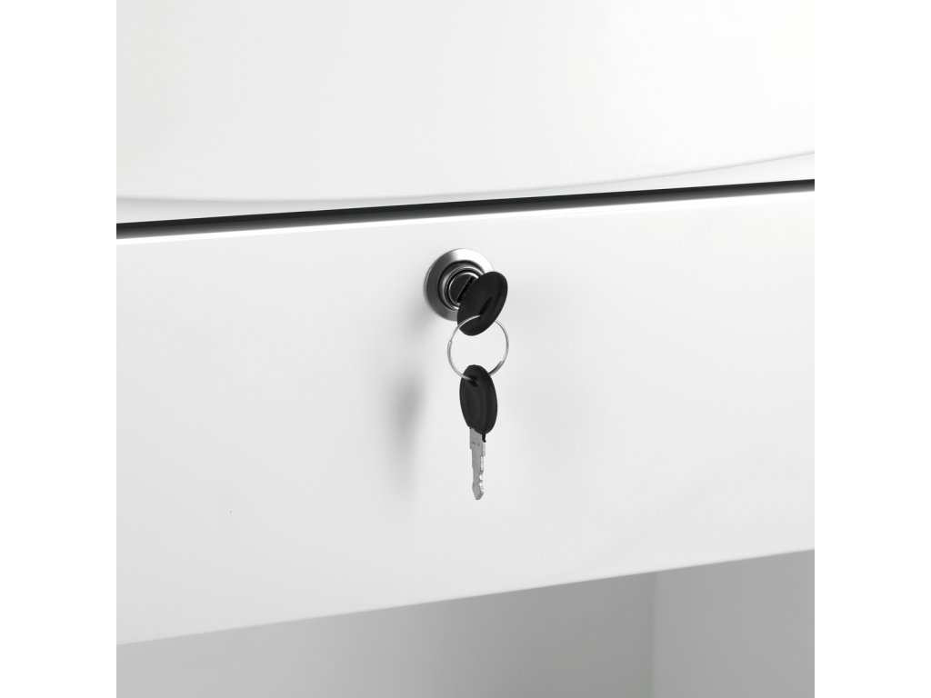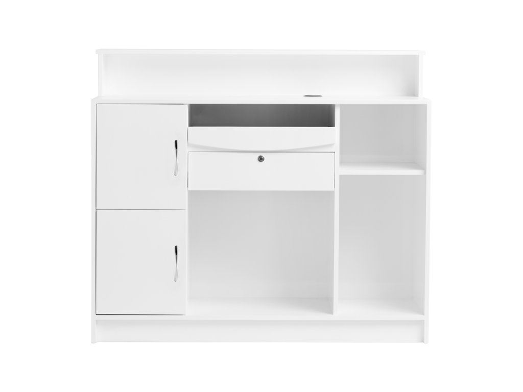 Recepcia je navrhnutá tak, abybyť najpriestrannejším a najpraktickejším kusom nábytku. Pre pohodlné používanie je vybavená: tromi otvorenými policami rôznych veľkostí, jednou výsuvnou policou, zásuvkou na kľúč a dvoma uzamykateľnými skrinkami s estetickými úchytkami v strieborných odtieňoch. Priestory boli usporiadané tak, abyuľahčiť organizáciu a udržiavanie poriadku na mieste, kde sú uložené všetky dôležité dokumenty.