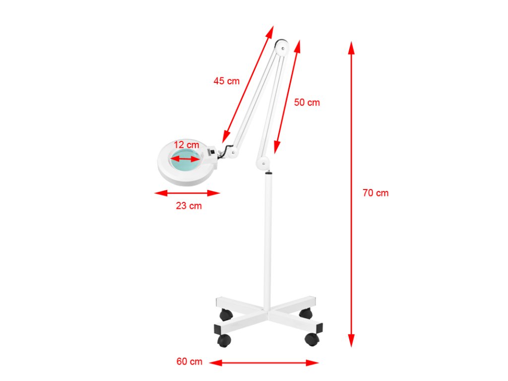 5 dioptrická lupa, LED lampa s nastaviteľnou intenzitou svetla na štvorramennom stojane. umožňuje zobraziť zväčšenú pokožku s dobrým osvetlením. Používa sa aj pri manikúre a pedikúre, permanentnom make-upe, epilácii. Má vysokú viditeľnosť, antireflexné sklo a LED diódy, ktoré svietia jasným bielym svetlom bez toho, aby spôsobovali bolesť očí počas dlhodobej práce. Ideálne sa hodí pre kozmetické, zubárske a veterinárne ordinácie a používa sa v iných odvetviach.