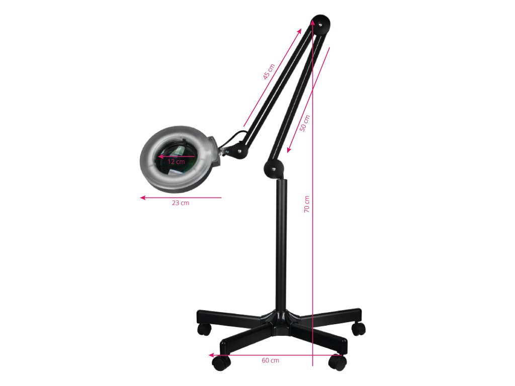 5 dioptrická lupa, LED lampa na päťramennom stojane. umožňuje zobraziť zväčšenú pokožku s dobrým osvetlením. používa sa aj pri manikúre a pedikúre, permanentnom make-upe, epilácii. má vysokú viditeľnosť, antireflexné sklo a fluorescenčnú lampu, ktorá svieti jasným bielym svetlom bez toho, aby spôsobovala bolesť očí pri dlhodobej práci. ideálne sa hodí pre kozmetické, zubárske a veterinárne ordinácie a používa sa v iných odvetviach.