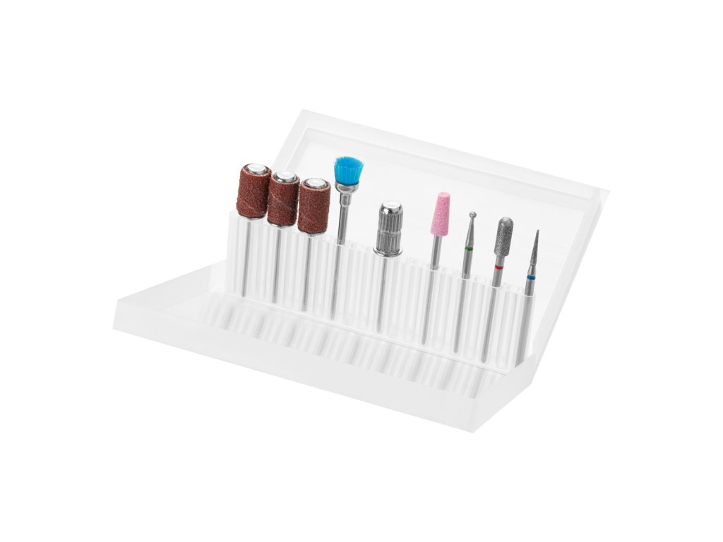 Profesionálna súprava diamantových a kamenných fréz a čiapok s nosičom z najkvalitnejších materiálov je určená na čistenie, vyhladzovanie a formovanie kožtičky. Frézky sú užitočné najmä pri príprave nechtov na kombinovanú manikúru. Môžeme ich použiť aj na odstránenie zhrubnutí v blízkosti nechtovej platničky alebo na tvarovanie nechtov a odstránenie hybridných lakov, gélov, akrylov bez poškodenia nechtovej platničky.