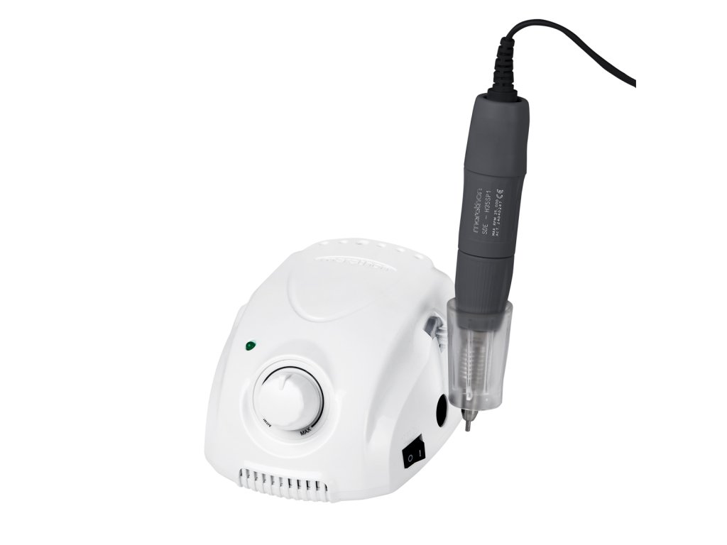 Zahrnuté: základňa na vŕtanie nechtov, rukoväť, napájací zdroj, nožný pohon, silikónový stojan na rukoväť, príručka.