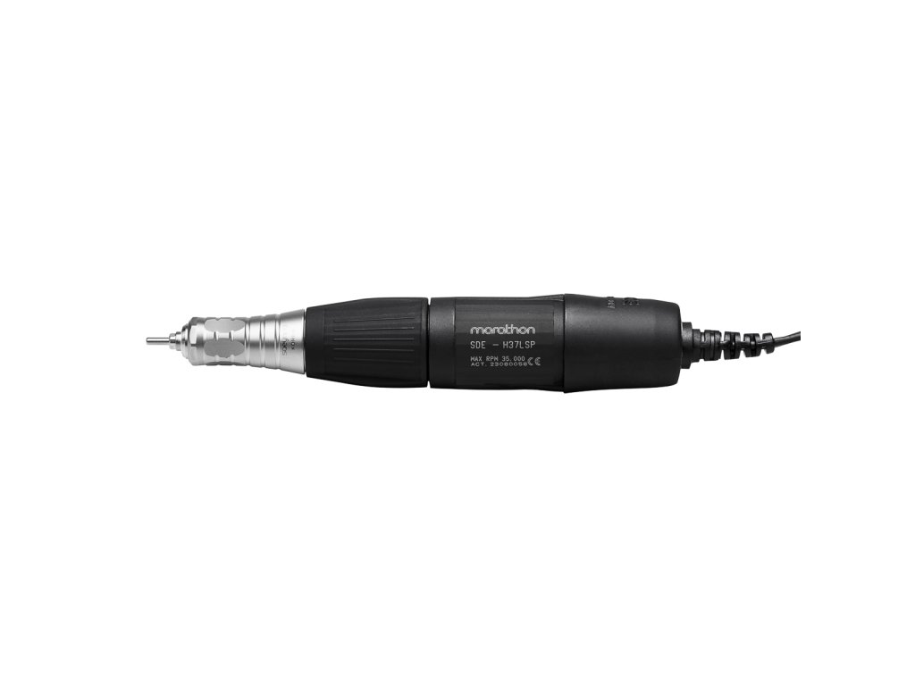Presný násadec H37LSP dokonale padne do ruky, čo zaručuje vysoký komfort používania. Dosahujemaximálna rýchlosť 35 000 otáčok za minútu, čo ovplyvňuje efektivitu práce. Rukoväť je vybavenáľahko použiteľný systém Twist-Lock, čo umožňuje rýchlu a plynulú výmenu vrtákov. Prvok jesprávne vyvážené a ergonomicky profilované, a okrem toho sa znížili vibrácie násadca, takže aj mnoho hodín práce s vŕtačkou na nechtynadmerne neunavujte ruku. Plastový kryt obmedzuje prenos tepla, takže zahrievanie zariadenia nie je citeľné. Pružný pružinový kábel poskytuje vysoký komfort práce,dosahuje dĺžku až 135 cm s výrazným rozťahovaním.