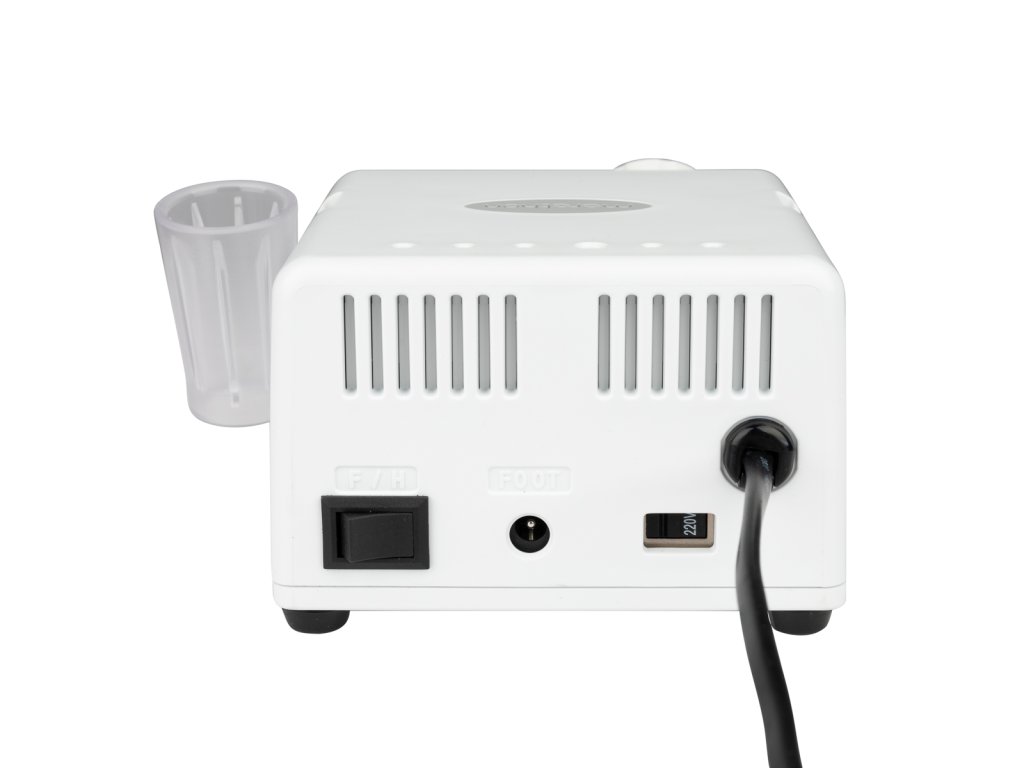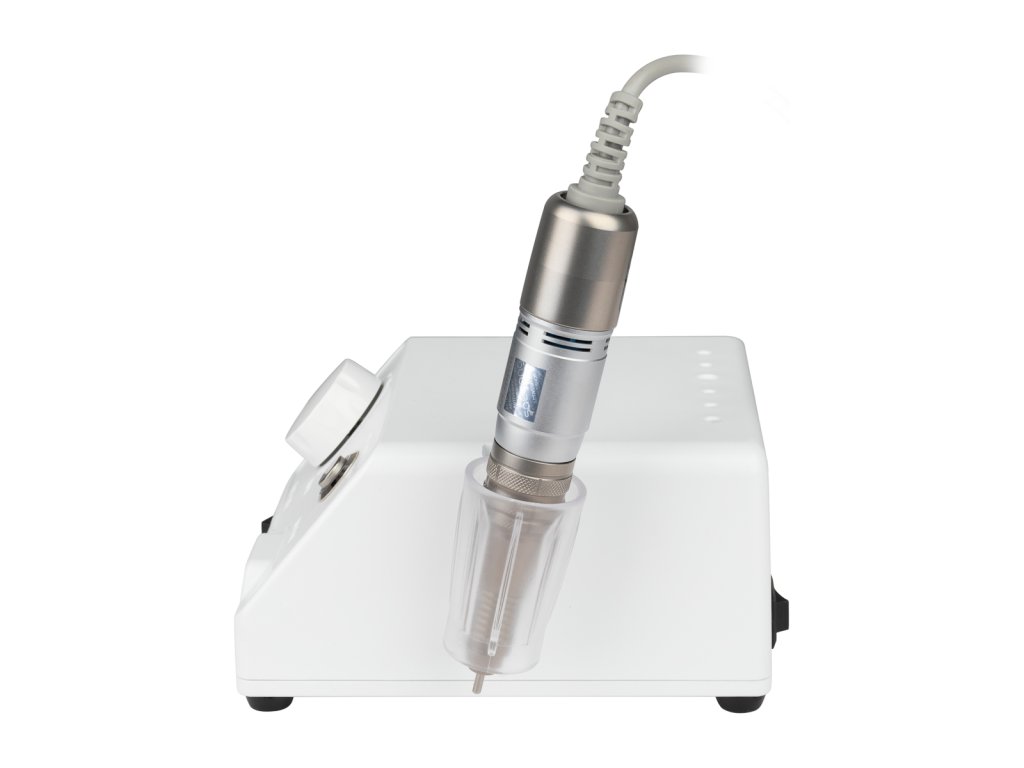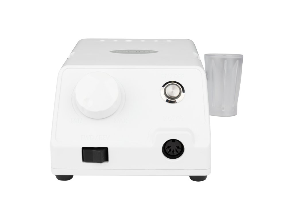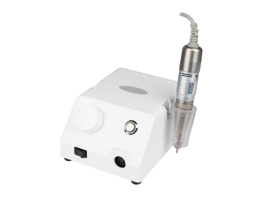 Výrobky Marathon sa vyznačujú predovšetkým mimoriadne jednoduchým ovládaním, ktoré je okamžite zrozumiteľné. Po zapojení a pripojení náhlavnej súpravy stačí zapnúť tlačidlo napájania a potom pomocou gombíka nastaviť rýchlosť. Na prednej strane máme aj tlačidlo FWD / REV na zmenu smeru otáčania vrtáka na nechty. Počas prestávky môžeme odložiť násadec na priloženú rukoväť alebo ho položiť na silikónový stojan.