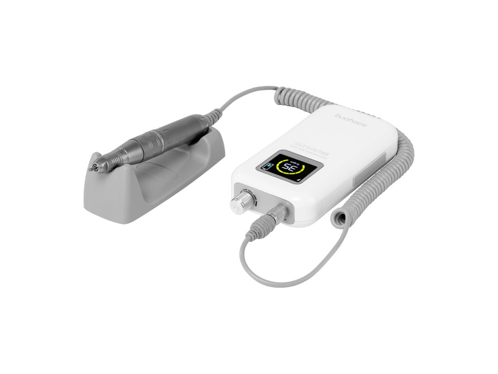 Vŕtačka na nechtypracuje ticho, ktorá eliminuje dráždivý hluk a poskytuje pohodlie osobe vykonávajúcej ošetrenie aj klientom. Zabudovaný2850 mAh batéria umožňuje pracovať až 8 hodín na jedno nabitie. Navyše má zariadenieautomatický režim úspory energie, ktorý zabraňuje vybíjaniu batérie. Okrem toho bolo zariadenienavrhnuté s ohľadom na ergonómiu - pohodlné usporiadanie tlačidiel aintuitívne ovládanie aby každé ošetrenie prebiehalo hladko.