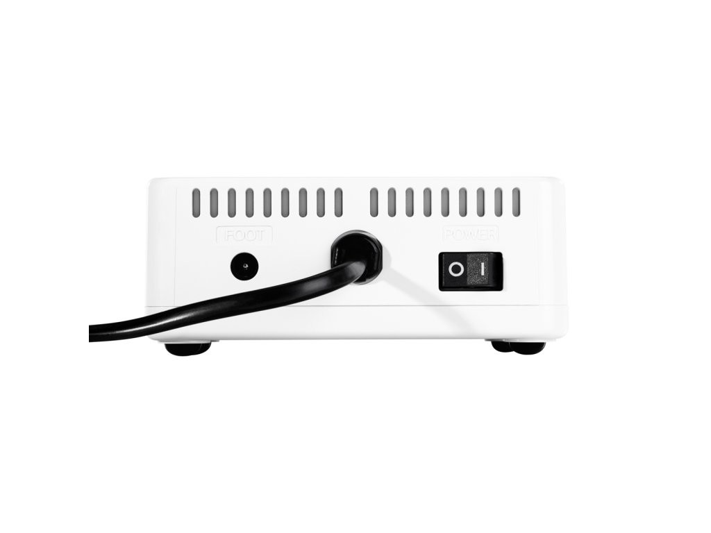 Vŕtačka na klince je vybavenáprehľadný ovládací panel s digitálnym displejom, ktorý zohráva kľúčovú úlohu pri monitorovaní a riadení prevádzky zariadenia. Obrazovka informuje o rýchlosti otáčania, pri ktorej práve pracuje hlava prístroja, aby sa zabezpečila presná a bezpečná prevádzka vŕtačky na klince. Otáčky možno nastaviť pomocou gombíkaaž 30 000 otáčok za minútu, čo umožňuje prispôsobenie, a teda aj pohodlné vykonávanie širokej škály ošetrení. Systémplynulá zmena smeru otáčania so zabudovanou pauzou zabezpečuje bezpečné a pohodlné prepínanie medzi oboma pracovnými smermi. Okrem toho,kontrolná dióda sa rozsvieti na zeleno alebo červeno, čo uľahčuje rozpoznanie smeru činnosti vŕtačky na klince. Ovládací panel má tiež funkcia pauzy, ktorá umožňuje používateľovi zastaviť zariadenie, čím sa dosiahne väčšia kontrola nad procesom. Použité riešenia umožňujú prevádzku vŕtačky na klinceintuitívne a veľmi efektívne.