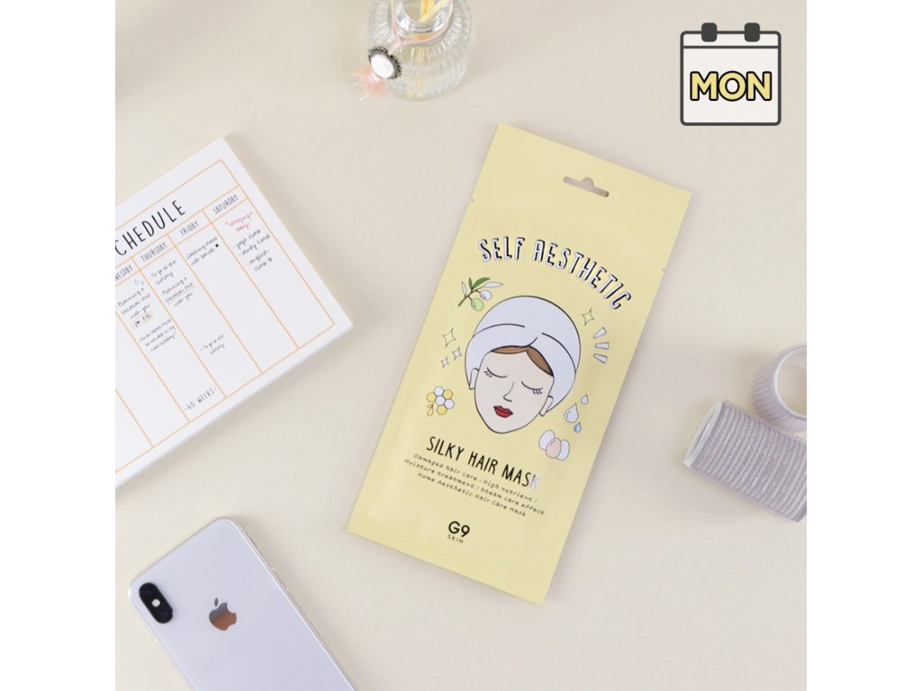 Intenzívna maska na vlasy vyživuje pokožku hlavy a obnovuje poškodené vlasy, aby vyzerali zdravo. G9 Complex obsahuje zmes výťažkov z lotosu, brečtanu, borovicového ihličia, eukalyptu, listov oregana, chlorelly, ibiškových lístkov, semienok chia a zeleného čaju. Pre dokonalú starostlivosť o seba vyskúšajte balenie 8 masiek G9 Skin Self Aesthetic Magazine.???*Použitie*Túto masku použite na výživu vlasov a dodanie im lesklejšieho a hodvábnejšieho vzhľadu.??? ???*Zloženie*Aqua, dimetikón, kaprylový/kapricový triglycerid, glycerín, behentrimonium chlorid, cetearylalkohol, cetylalkohol, stearylalkohol, amodimetikón, 1,2-hexándiol, izopropylalkohol, parfum, silikónové kvaternium-16, cetrimoniumchlorid, tridecetán-12, fenoxyetanol, butyloktanol, undeceth-11, Vanillyl Butyl Ether, Hydroxycitronellal, Alkohol, Undeceth-5, Linalool, Ethylhexylglycerín, Laureth-23, Laureth-3, Limonén, Hexyl Cinnamal, Kyselina octová, EDTA disodná, Benzoan sodný, Argania Spinosa Kernel Oil , Hydrogenovaný lecitín, Moringa Oleifera Seed Oil, Olea Europaea Fruit Oil, Pentaclethra Macroloba Seed Oil, Močovina, citronellol, xantánová guma, butylénglykol, geraniol, dipropylénglykol, jodopropynyl butylkarbamát, extrakt z plodov Capsicum Annuum, extrakt z medu, extrakt z listov Camellia Sinensis, extrakt z listov Eucalyptus Globulus, extrakt z listov Hedera Helix, extrakt z kvetov Hibiscus Sabdariffa, extrakt zo semien Linum Usitatissimum, Nelumbo Nucifera Flower Water, Origanum Vulgare Lea f Extract, Salvia Hispanica Seed Extract, Pinus Sylvestris Leaf Extract, Egg Yolk Extract, Brassica Oleracea Botrytis Extract, Brassica Oleracea Capitata Leaf Extract, Brassica Oleracea Italica Extract, Raphanus Sativus Root Extract, Tocopherol.??? ???*Ako používať*Položte čiapočku na mokré čisté vlasy. Ak máte dlhé vlasy, dajte si ich hore a vložte ich do čiapky. Jemne masírujte a počkajte 15-30 minút. Potom čiapku odstráňte a opláchnite ju vlažnou vodou.?