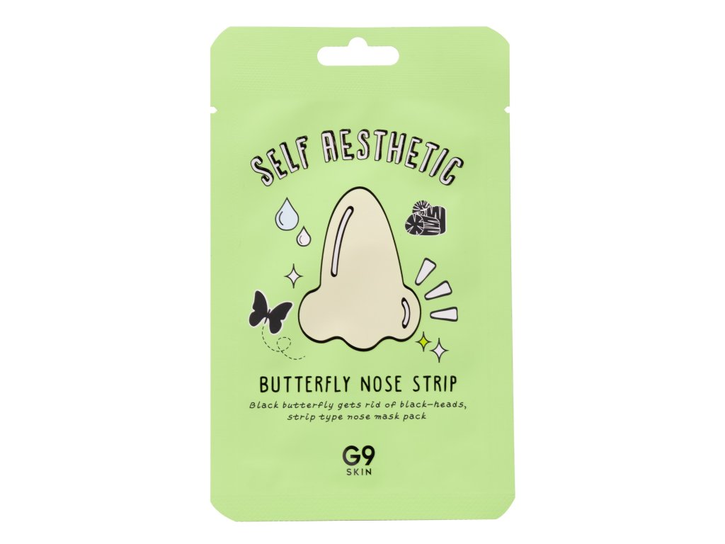 Odlupujúca sa náplasť na nos okamžite odstráni viditeľné čierne bodky. Tvar motýľa pokrýva nos a najproblematickejšie oblasti. Zaveďte tento peel-off stip do svojej mesačnej rutiny, aby ste sa zbavili čiernych bodiek. Na dokonalú starostlivosť o seba vyskúšajte balenie 8 masiek G9 Skin Self Aesthetic Magazine.???*Použitie*Tento prúžok na nos pôsobí na uvoľnenie pórov.??? ???*Zloženie*PVP, glycerín, PEG-12 dimetikón, butylénglykol, voda, dipropylénglykol, alkohol, marocký lávový íl, prášok z dreveného uhlia, polykvaternium-37, oxid titaničitý, extrakt z kôry citrusov Nobilis, hydrolyzovaný kolagén, Alantoín, olej z Persea Gratissima, olej zo semien Simmondsia Chinensis, 1,2-hexanediol, extrakt z kvetov Chamomilla Recutita, hydrogéndimetikón, etylhexanediol, extrakt z listov Camellia Sinensis, extrakt z listov Eucalyptus Globulus, Hedera Helix Leaf Extract, Hibiscus Sabdariffa Flower Extract, Linum Usitatissimum Seed Extract, Nelumbo Nucifera Flower Water, Origanum Vulgare Leaf Extract, Pinus Sylvestris Leaf Extract, Salvia Hispanica Seed Extract, Portulaca Oleracea Extract, Aloe Barbadensis Leaf Extract, Lilium Tigrinum Extract, Hamamelis Virginiana Extract, Chamaecyparis Obtusa Leaf Extract, Mentha Rotundifolia Leaf Extract, CI 77499??? ???*Ako používať*Očistite a osušte pokožku (pred použitím prúžku nepoužívajte žiadne prípravky na starostlivosť o pokožku.) Naneste na nos trochu vody a priložte prúžok na oblasť nosa. Nechajte ho 10 - 15 minút zaschnúť. Pomaly a opatrne ho odlepte, začnite od okrajov a ťahajte smerom k stredu.?