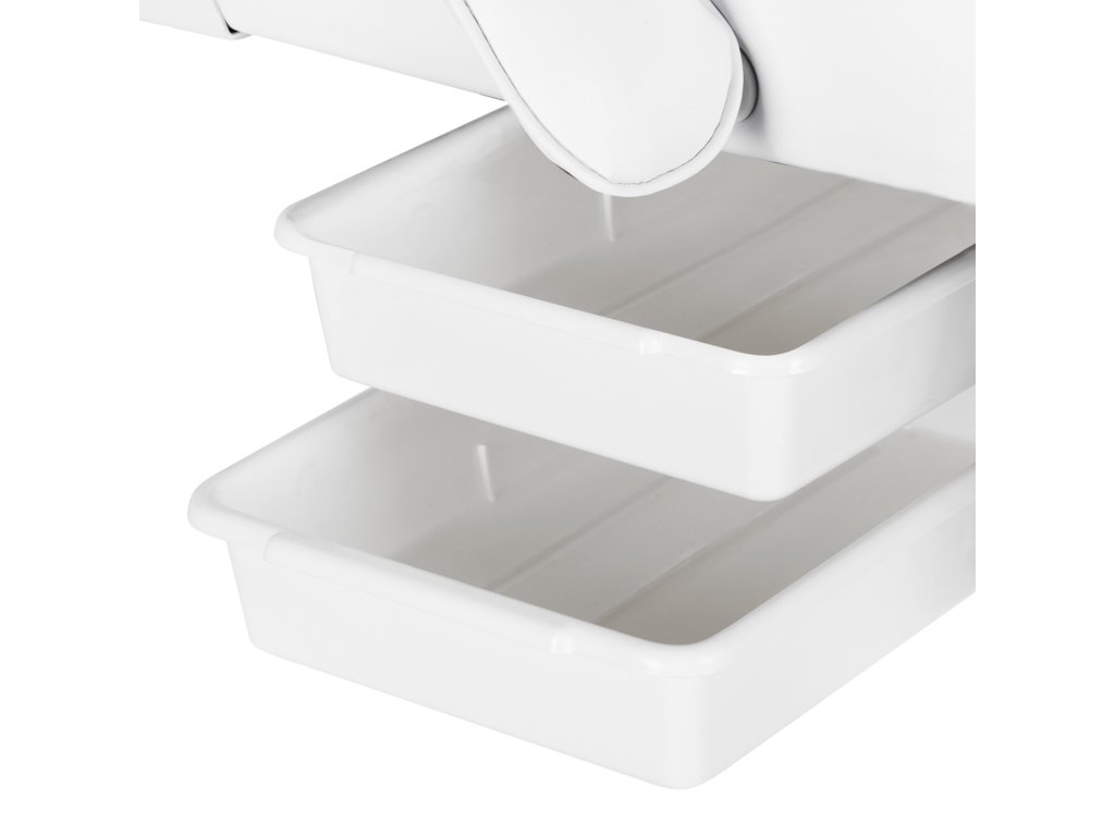 Plastic trays mounted under the seat provide easy access to the most necessary instruments. Thanks to the materials used, the pull-out containers are durable and easy to clean. Capacious drawers significantly increase the comfort of work, and additionally help to keep the workplace tidy.