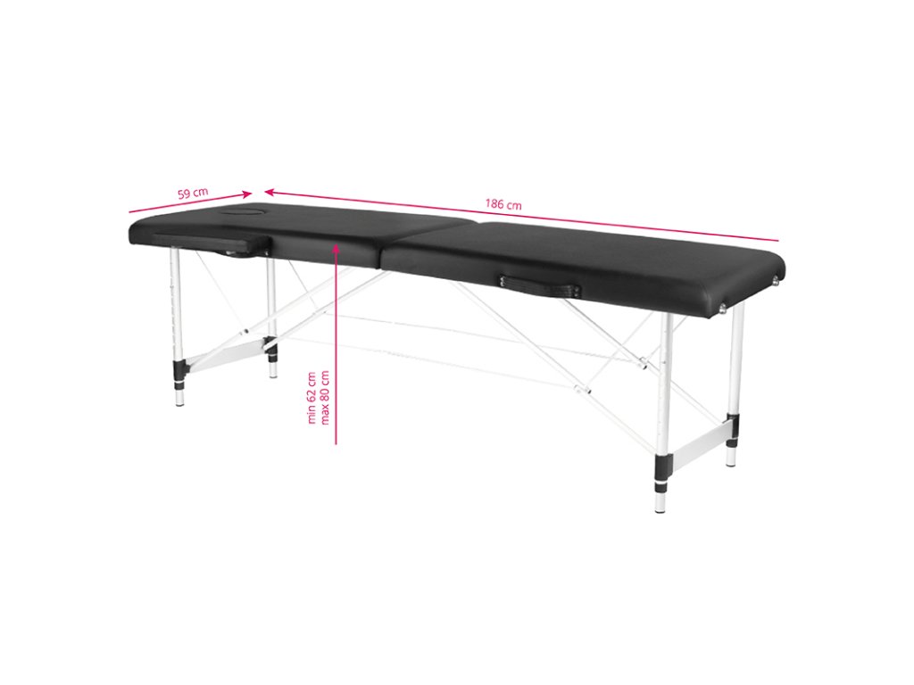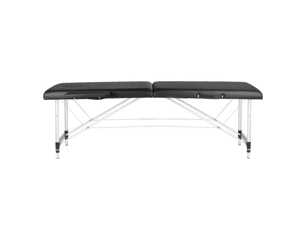 Skladací masážny stôl, hliník, komfort, 2 čierne segmenty