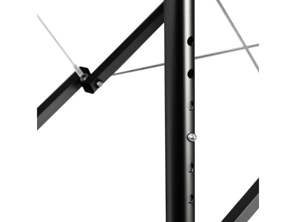 Výšku možno nastaviť podľa výšky a individuálnych potrieb osoby vykonávajúcej zákrok pomocouteleskopické nastavenie s blokovacím mechanizmom. Každá z hliníkových nôh stola sa skladá z dvoch rúrok, ktoré sa po odomknutí môžu navzájom voľne pohybovať.Mechanizmus Fast Lock drží komponenty vo zvolenej polohe, keď je zámok umiestnený v príslušnom otvore. Okrem toho je štruktúra rámustabilizované kovovými lanami, vďaka čomu je masážny stôl pevný a ideálny na širokú škálu služieb.