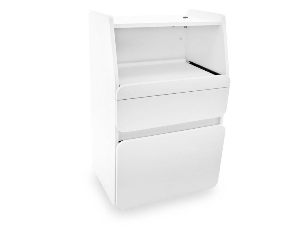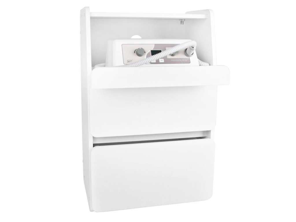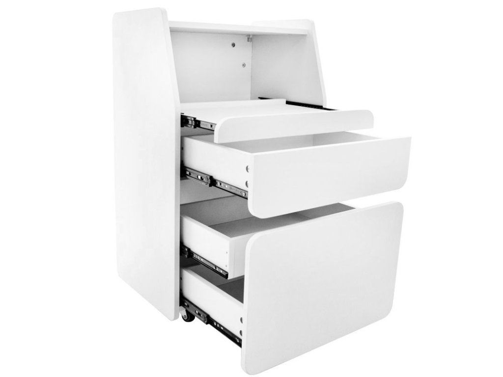 funkčná kozmetická skrinka, ktorá bude užitočná v každom kozmetickom salóne. je malá a zároveň pomerne priestranná. dve veľké zásuvky vám umožnia usporiadať praktické doplnky. kus nábytku dobre ladí s modernými, svetlými interiérmi. má zabudovaný držiak na tubu lupy.