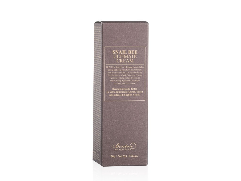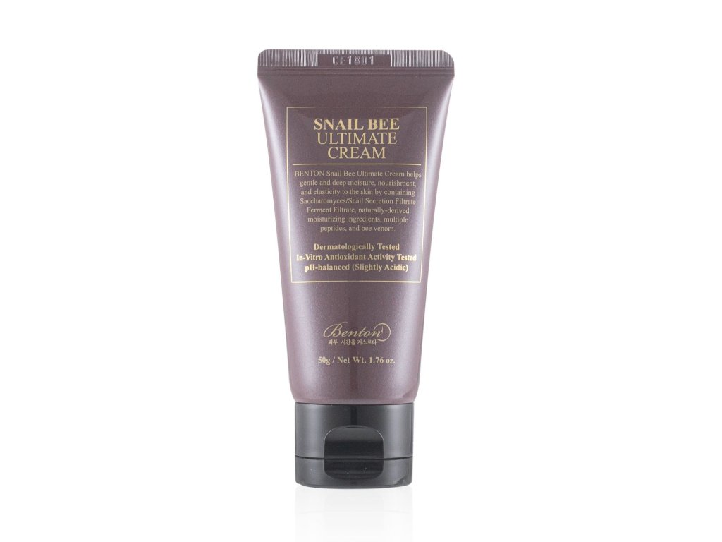 Snail Bee Ultimate Cream od kórejskej značky Benton slúži ako jemný, ale hĺbkovo hydratačný krém, ktorý účinne vyživuje pokožku a zvyšuje jej pružnosť.Toto výnimočné zloženie sa môže pochváliť rôznymi kľúčovými zložkami vrátane 50 % slimačieho mucínu, ktorý je známy svojou schopnosťou vstrebávať sa do pokožky a ochrannými vlastnosťami. Obsahuje tiež hydratačné látky prírodného pôvodu, rad peptidov a včelí jed, ktorý nielen upokojuje pleť, ale má aj účinky proti jej starnutiu.Využitím kombinovaných vlastností týchto zložiek tento krém vynikajúco udržiava vysokú úroveň hydratácie a dodáva pleti žiarivý vzhľad, pričom súčasne rieši problémy s akné a poskytuje antioxidačné a upokojujúce vlastnosti.Jeho luxusná hustá textúra sa ľahko vstrebáva a jeho jemná, neutrálna vôňa z neho robí vynikajúcu voľbu pre osoby, ktoré hľadajú výrobky bez vône. Okrem toho neobsahuje umelé parfumácie a alkohol, čo zaručuje šetrnosť k pokožke.???*Použitie*Používajte tento krém na výživu pokožky, zvýšenie jej pružnosti a posilnenie jej ochrannej bariéry.??? ???*Zloženie*"Filtrát kvasiniek Saccharomyces/Snail Secretion Filtrate, Aqua (voda), glycerín, extrakt z koreňa Dioscorea Japonica, filtrát kvasiniek Saccharomyces/Barley Seed Ferment Filtrate, propándiol, butylénglykol, 1,2-hexanediol, niacínamid, izononyl izonanoát, behenylalkohol, hydrogenovaný polydecén, Cetylalkohol, polyglyceryl-3-metylglukóza distearát, hexapeptid-9, hexapeptid-11, palmitoyl-pentapeptid-4, palmitoyltripeptid-1, tripeptid-1, tripeptid-1 medi, extrakt z kôry vŕby Salix Alba, extrakt z laminárie digitálnej, extrakt z skorocelu ázijského (Plantago Asiatica), extrakt z kôry brestu hraboša poľného (Ulmus Campestris), Diospyros Kaki Leaf Extract, Ceramide NP, Polyglyceryl-10 Laurate, Polyglutamic Acid, Althaea Rosea Root Extract, Aloe Barbadensis Leaf Extract, Pentaerythrityl Tetraethylhexanoate, Squalane, Cetearyl Olivate, Acrylates/C10-30 Alkyl Acrylate Crosspolymer, Sorbitan Olivate, Tromethamine, Glyceryl kaprylát, pantenol, trehalóza, extrakt z koreňa Rehmannia Chinensis, kopolymér akryloyldimetyltaurátu amónneho/VP, etylhexylglycerín, kopolymér glyceryl akrylát/kyselina akrylová, xantánová guma, adenozín, alantoín, hydrogenovaný lecitín, fytát sodný, včelí jed, kaprylyl glykol??? ???*Ako používať* Požadované množstvo dávkujte do dlane a jemne naneste na tvár. Krúživými pohybmi vmasírujte prípravok, kým sa úplne nevstrebe.???