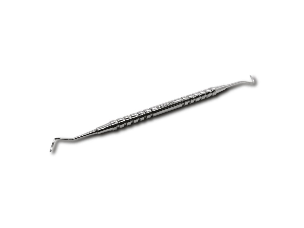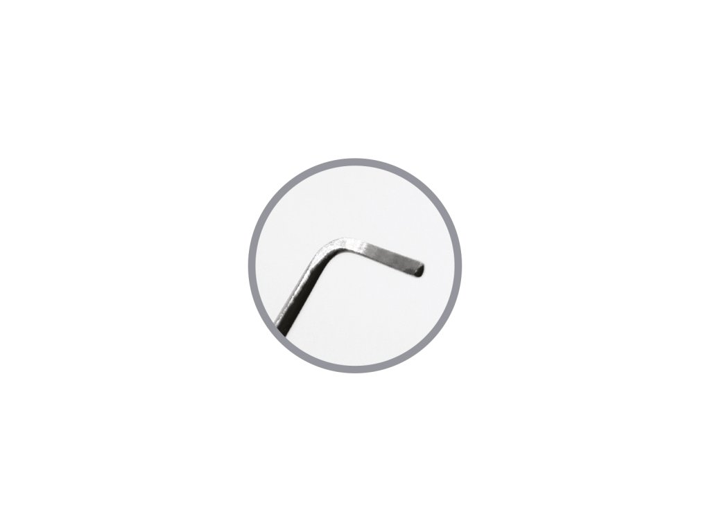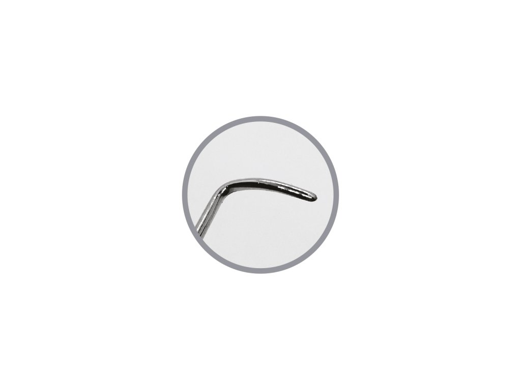 Podiatrická sonda S je vyrobená z najkvalitnejšej nehrdzavejúcej ocele. Nástroj je určený na zavádzanie tamponád a na čistenie priestorov v blízkosti nechtových valov. Sonda má mimoriadne pohodlnú rukoväť. Optimálna veľkosť nástroja zaručuje bezpečnosť pri používaní začiatočníkmi. Sonda je vhodná na sterilizáciu v autokláve.