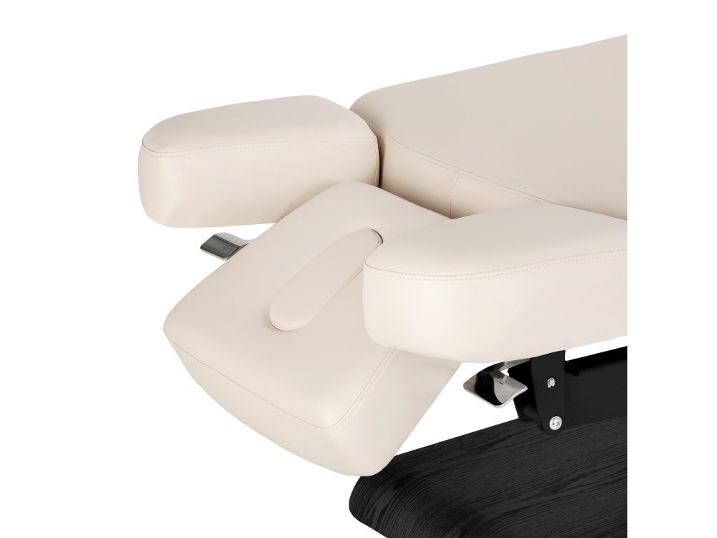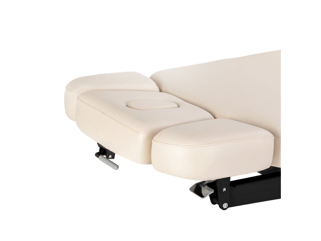 Opierka hlavy bola navrhnutá premaximálny komfort pre klienta a funkčnosť pre špecialistu. Hlavná časť je manuálne nastaviteľná, čo umožňuje nastaviťoptimálna poloha opierky hlavy, zatiaľ čo bočné segmenty sa pohybujú hore a dole, aby sa prispôsobili individuálnej anatómii hlavy a krku klienta. Toto riešeniezabezpečuje pohodlnú polohu počas ošetrenia, udržiava správne držanie tela a zvyšuje pohodlie klienta aj osoby vykonávajúcej ošetrenie.