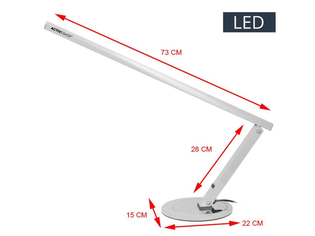 moderný dizajn. môže sa používať v kozmetických salónoch pri ošetrení manikúry. poskytuje veľmi dobré osvetlenie v chladnom odtieni, je určený na použitie v interiéri. nemal by byť vystavený priamej vlhkosti.