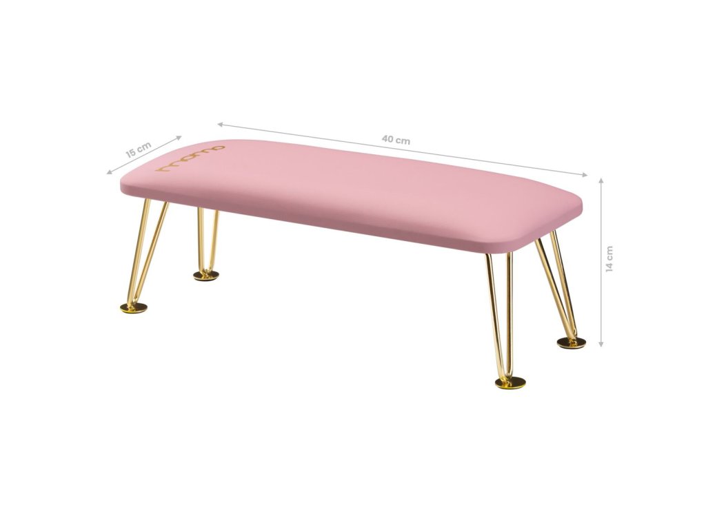 Profesionálny stojan na manikúru 6M je klasická opierka na dlane. Čalúnenie je vyrobené z ekokože a nohy sú z pochrómovanej ocele v zlatej farbe. Vhodná výška stojana zabezpečuje pohodlnú polohu pre klienta aj kaderníka. Kaderník sa nehrbí a drží ju rovno, vďaka čomu sa zmiernia bolesti chrbtice.