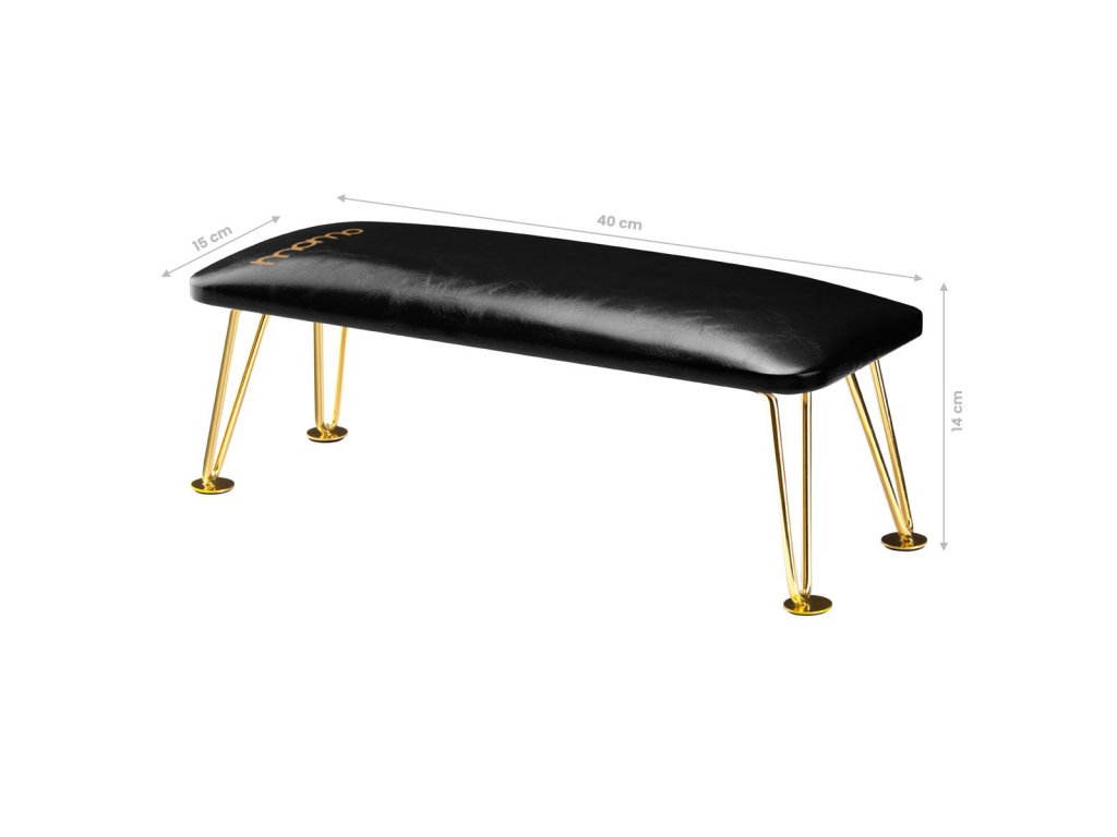 Profesionálny stojan na manikúru 6M je klasická opierka na dlane. Čalúnenie je vyrobené z ekokože a nohy sú z pochrómovanej ocele v zlatej farbe. Vhodná výška stojana zabezpečuje pohodlnú polohu pre klienta aj kaderníka. Kaderník sa nehrbí a drží ju rovno, vďaka čomu sa zmiernia bolesti chrbtice.