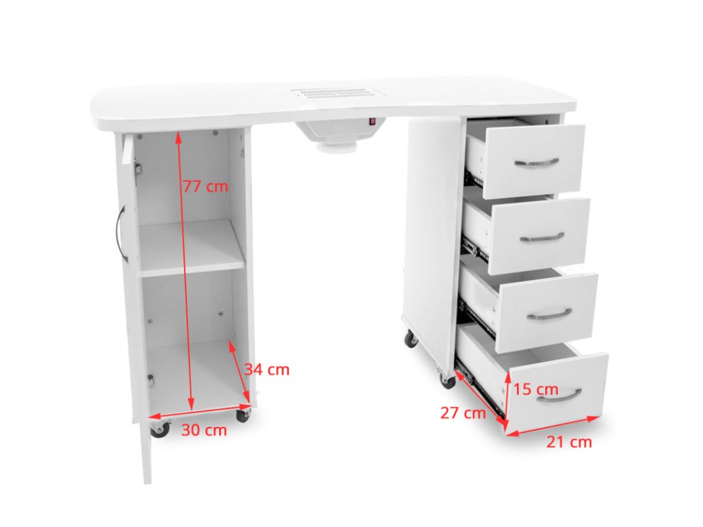 je to kus nábytku, ktorý je nielen funkčný, ale aj mimoriadne elegantný, dokonale sa hodí k zariadeniu moderných izieb. kozmetický stolík má zásuvku, skrinky rôznych veľkostí a pohlcovač prachu. nábytok je stabilný a ľahko sa premiestňuje v interiéri, aj keď je naložený. technické špecifikácie: