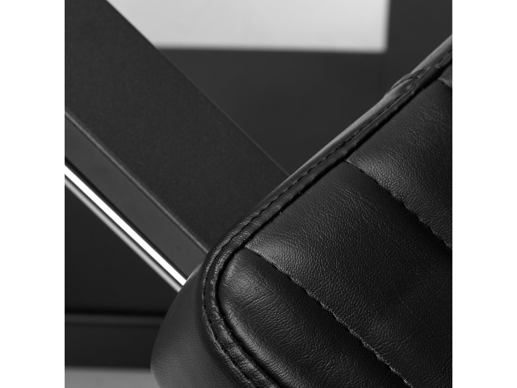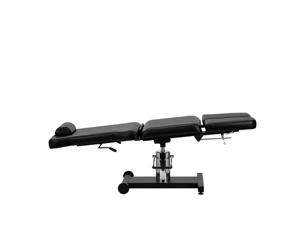 Jednoduchý, minimalistický vzhľad a klasické farby robia stoličkuideálny pre každý tetovací salón, čo výrazne zlepšuje komfortný výkon služieb. Funkčná stolička uľahčujezaujať pohodlnú polohu pre tetovanú osobu aj pre umelca. Polstrovanie s penou odolnou proti deformácii, poťah zo syntetickej kože príjemnej na dotyk v odtieňoch čiernej a stabilný kovový rámzabezpečujú odolnosť a jednoduché čistenie zariadenia. Estetické, jednoduché šitie mu dodávajedinečný charakter. Kolesá umiestnené v jednej časti základne umožňujúoveľa jednoduchšie sťahovanie nábytku.