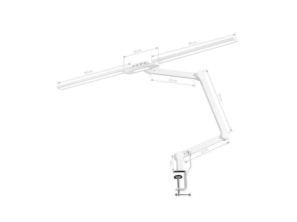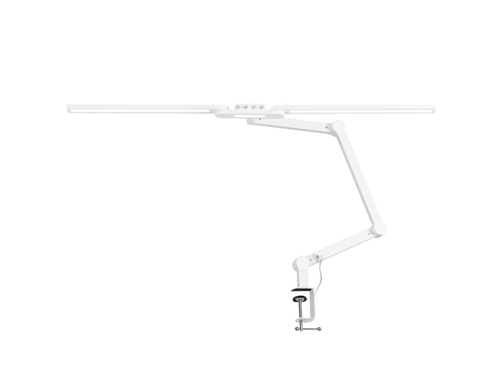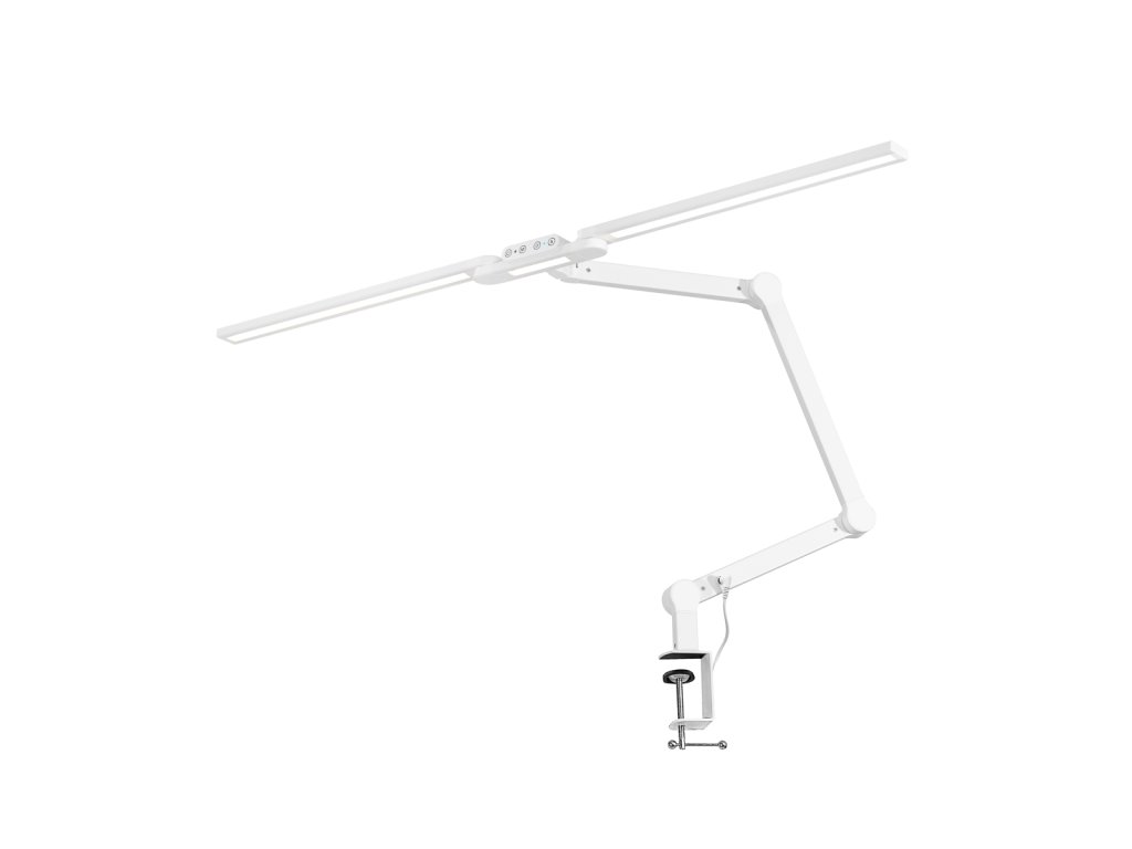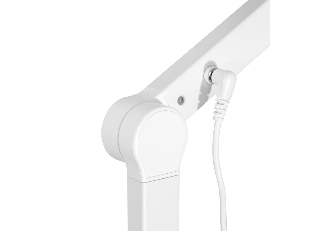 Jednoduchá forma statívu v klasickom bielom odtieni a matný povrch mu dodávajúelegantný vzhľad a lampa vyzerá skvele takmer v každom interiéri. Jednoduchá inštalácia na pracovnú dosku je možná pomocourukoväť podobná zveráku, ktorého maximálny otvor je 6,3 cm - budevhodné pre väčšinu stolových dosiek.