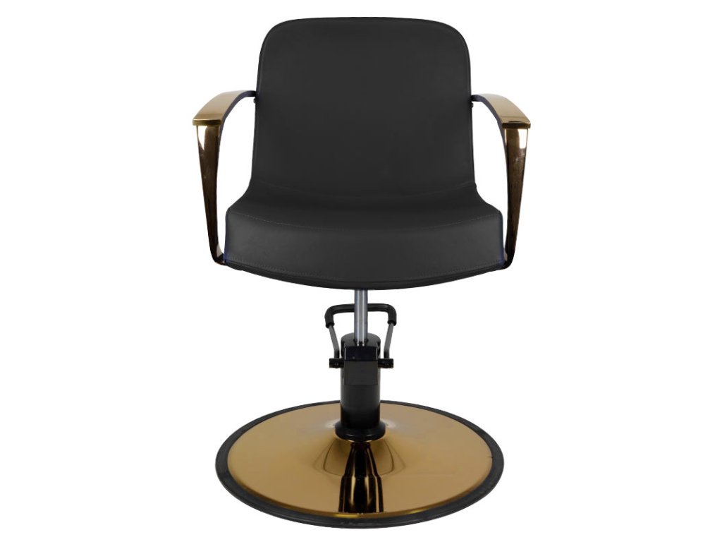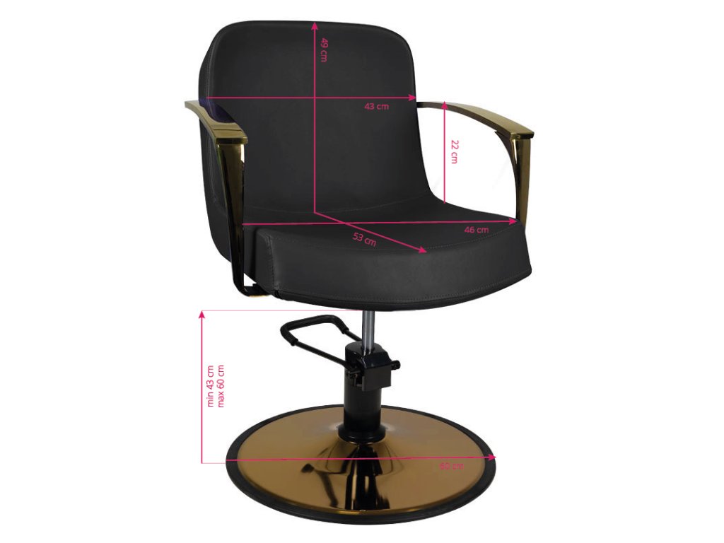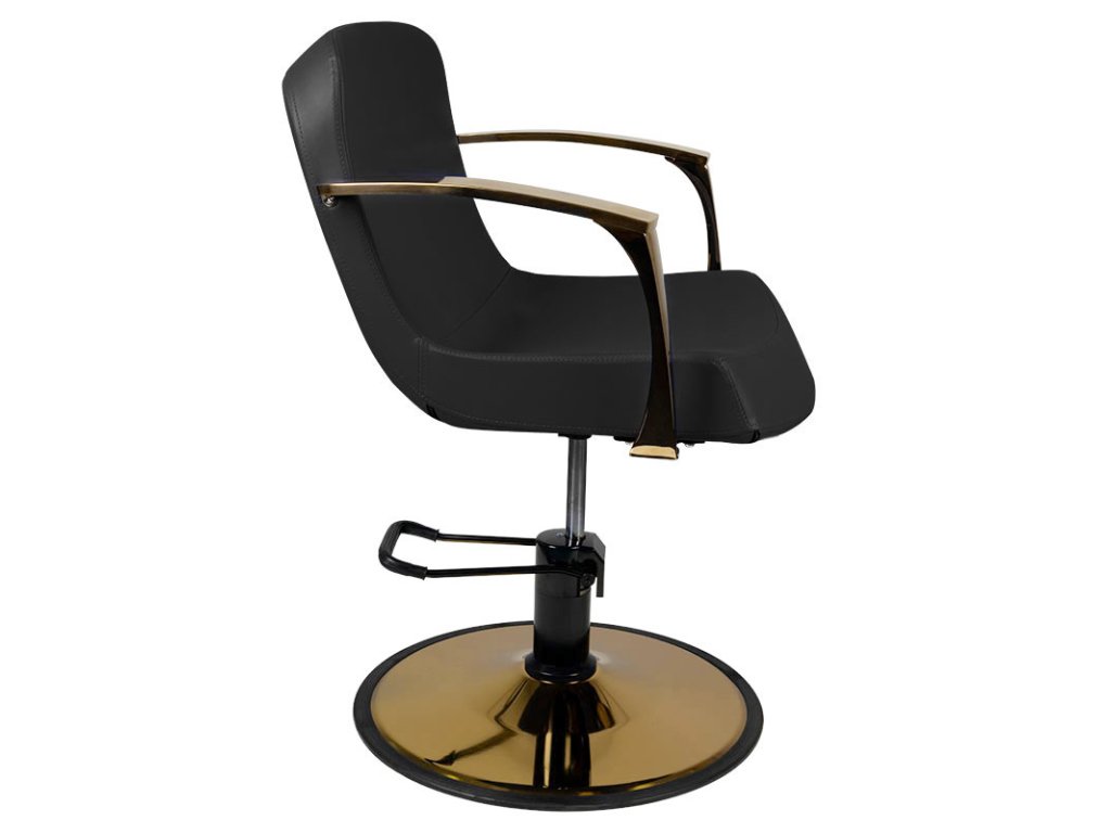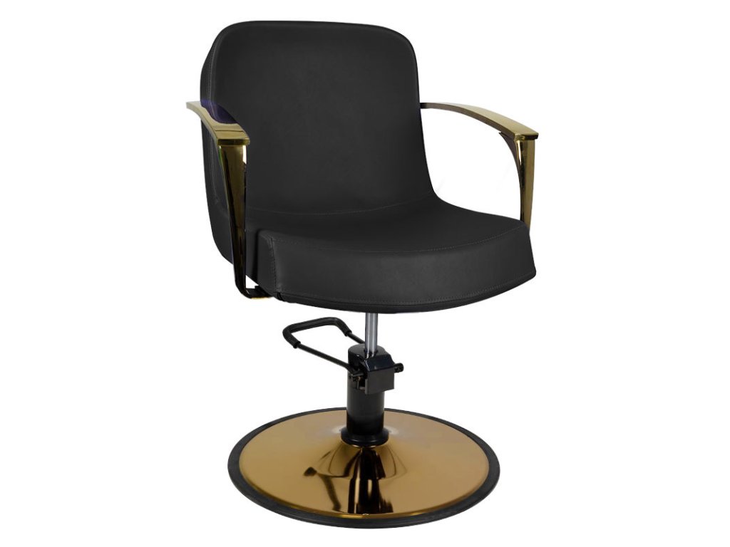 moderné kadernícke kreslo s jedinečným dizajnom a mimoriadnou kvalitou. kovové prvky žiaria zlatou farbou, čo umocňuje pocit luxusu. veľmi pohodlné, ideálne vhodné do moderných salónov. špeciálne tvarované, aby poskytlo klientovi pohodlnú polohu počas ošetrenia. nastaviteľné vo vertikálnej rovine. veľmi stabilné a pevné. čalúnenie z kvalitnej eko-kože. čiernej farby.