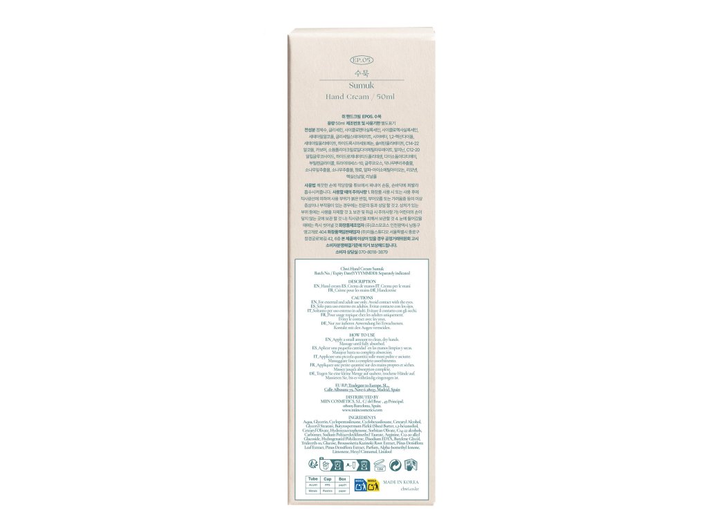 Sumuk Vegan Hand Cream je hydratačný a aromatický vegánsky krém na ruky, ktorý spája intenzívnu starostlivosť s pohlcujúcim čuchovým zážitkom. Jeho zloženie je obohatené o bambucké maslo a glycerín, ktoré poskytujú hĺbkovú výživu, jemnosť a ochranu pred vysušením a každodenným stresom. Rýchlo sa vstrebáva a nemastí, zanecháva ruky viditeľne jemnejšie a pohodlnejšie už po prvej aplikácii. Obsahuje rastlinné výťažky, ako je kórejská červená borovica a koreň Broussonetia Kazinoki, ktoré sú známe svojimi upokojujúcimi, antioxidačnými a revitalizačnými vlastnosťami. Tieto zložky pomáhajú chrániť pokožku pred poškodením vplyvom životného prostredia a zlepšujú jej štruktúru, pričom pri každom použití prinášajú wellness a obnovu. Vôňa inšpirovaná vôňou Sumuk v sebe spája tóny borovice, kadidla a pižma a vytvára hrejivú, elegantnú a dlhotrvajúcu stopu, ktorá premení každodennú hydratačnú rutinu na sofistikovaný zmyslový moment. Tento krém, ktorý je ideálny na každodenné použitie a obzvlášť užitočný po častom umývaní rúk, je určený pre všetky typy pokožky, ale odporúča sa najmä pre suchú alebo citlivú pokožku, ktorá hľadá pohodlie, výživu a jedinečnú vôňu.???*Použitie*Používajte tento krém na ruky na hydratáciu pokožky a obnovenie jej hebkosti.??? ???*Zloženie*Aqua, glycerín, cyklopentasiloxán, cyklohexasiloxán, cetearylalkohol, glycerylstearát, Butyrospermum Parkii (bambucké maslo), 1,2 hexándiol, cetearylolivat, hydroxyacetofenón, sorbitanolivat, C14-22 alkoholy, karbomér, sodná soľ polyakryloyldimetyltaurátu, Arginín, C12-20 alkylglukozid, hydrogenovaný polydecen, disodná EDTA, butylénglykol, tridecet-10, glukóza, extrakt z koreňa Broussonetia Kazinoki, extrakt z listov Pinus Densiflora, extrakt z Pinus Densiflora, parfum, alfa-izometyl ión, limonén, hexyl škoricový, linalool??? ???*Ako používať* Naneste malé množstvo na čisté a suché ruky. Jemne masírujte, kým sa úplne nevstrebe, pričom venujte osobitnú pozornosť prstom a kožičke. Aplikujte opakovane podľa potreby počas dňa, najmä po umytí rúk.?