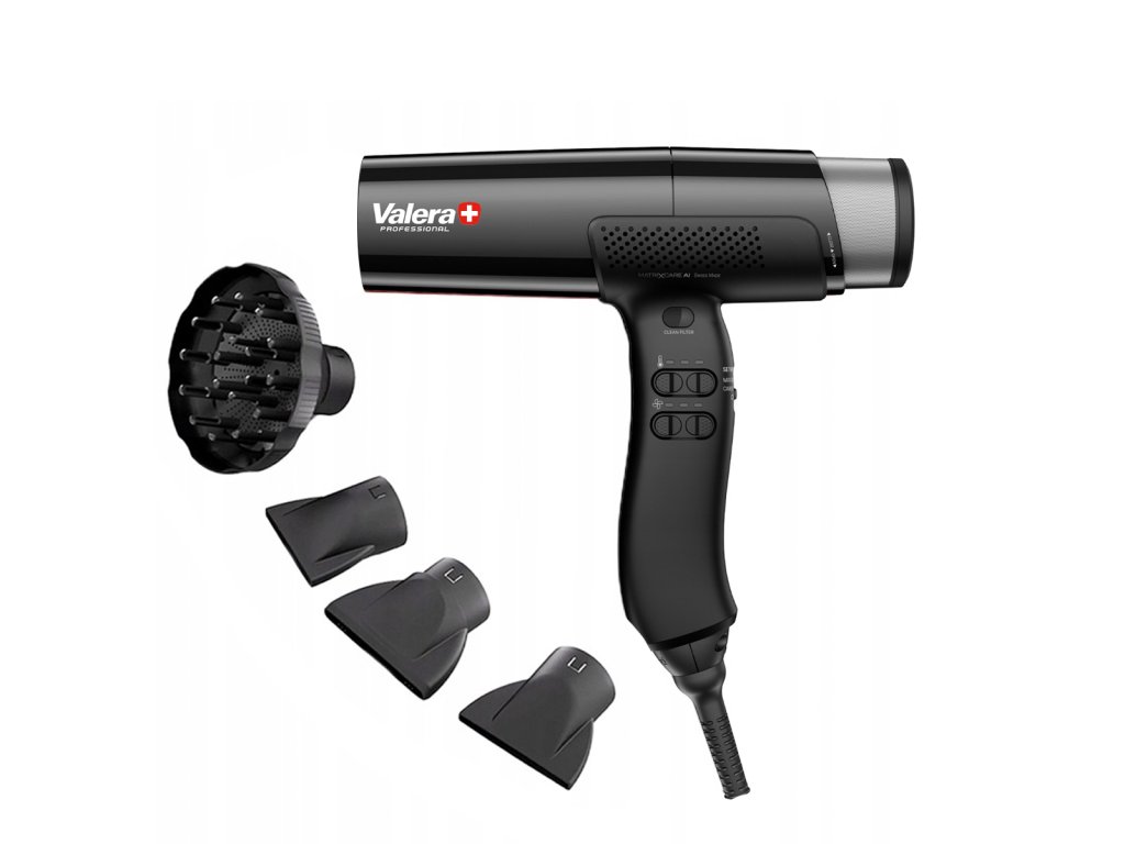 Valera MatrixCare AI je sušič vlasov určený pre profesionálnych kaderníkov a náročných domácich používateľov.Kombinuje modernú technológiu s výnimočnou ľahkosťou a komfortom práce. Vďaka digitálnemu bezkartáčovému motoru 100K-PAX s rýchlosťou 100 000 otáčok za minútu,zariadenie zaručuje rýchle a účinné sušenie, a to aj pri intenzívnom používaní.