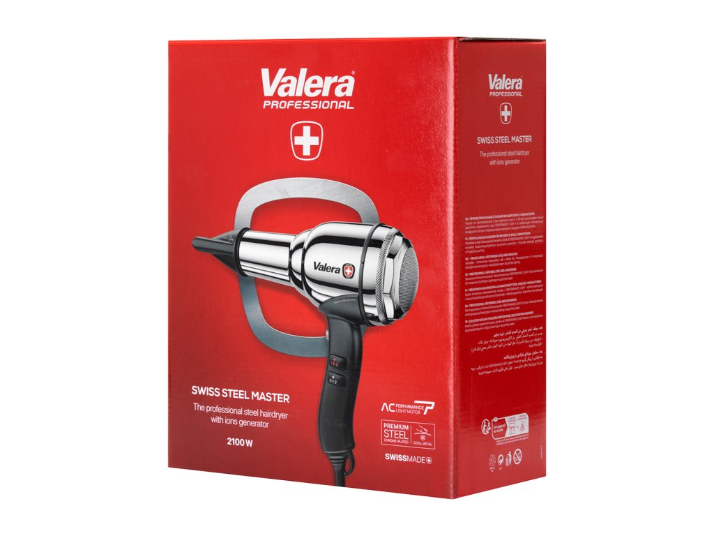 Sušič vlasov Valera Steel Master Chrome je kombináciou klasického dizajnu,moderné technológie a spoľahlivé funkcievytvorený s ohľadom na najnáročnejších používateľov. Je vyrobený z prvotriednej pochrómovanej ocele a zaujme svojouelegantný vzhľad a výnimočná odolnosť. Je to ideálna voľba pre profesionálny kadernícky salón, kdeštýl a výkonsú obe dôležité.