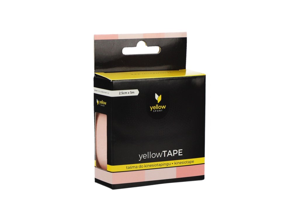 Kinesiotapingová páska YellowTAPE, dostupná vo svetloružovej farbe s rozmermi 2,5 cm x 5 m, je nepostrádateľnou