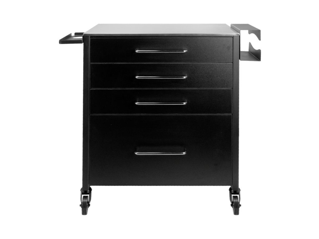 asistent pro ink 702 na uskladnenie tetovacieho vybavenia. vďaka pevnej oceľovej konštrukcii zaručuje dlhú životnosť. Drevené zásuvky a chrómové rukoväte dodávajú stanici elegantný šik. hliníková stolová doska ju udrží čistú pri práci s pigmentmi. tri malé zásuvky a jedna veľká, priestranná skrinka pojmú vybavenie, príslušenstvo a mnoho ďalšieho. všetko, čo potrebujete počas relácie, je usporiadané na jednom mieste. gumené kolieska (s brzdou) spôsobujú, že skrinka napriek svojej hmotnosti nie je problémom pri premiestňovaní.