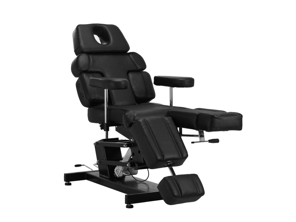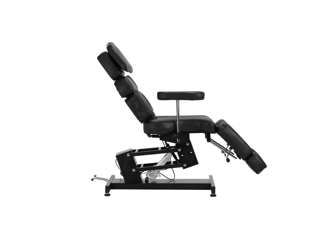 Jednoduchý vzhľad a klasická farebná schéma je kreslo ideálne pre akýkoľvek tetovací salón, výraznezvýšenie efektívnosti služieb. Pomáha tetovanej osobe aj umelcovi zaujať pohodlnú polohu. Výplň z peny odolnej voči deformáciám, čalúnenie z na dotyk príjemnej syntetickej kože v odtieňoch čiernej farby a stabilný kovový rám zabezpečujú odolnosť, stabilitu a jednoduché čistenie zariadenia.